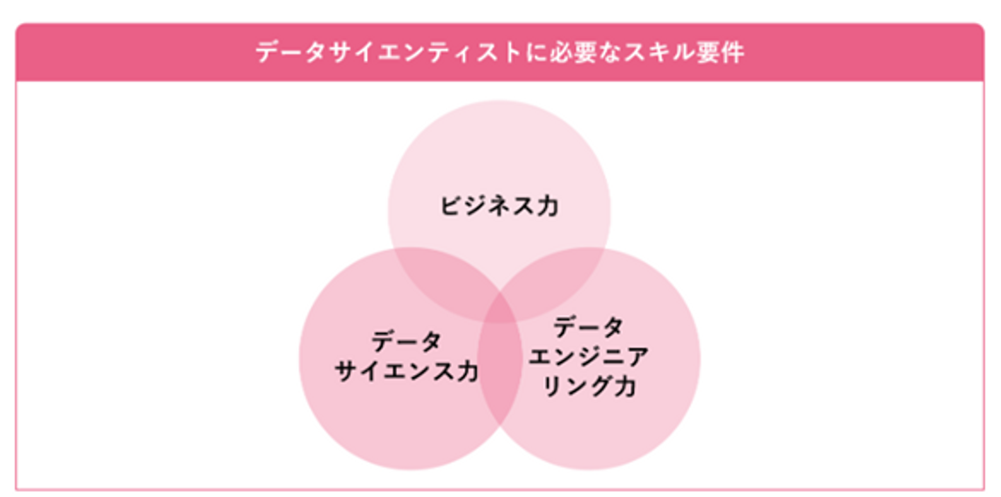 一般社団法人データサイエンティスト協会の定義によれば、データサイエンティストには「ビジネス力」「データサイエンス力」 「データエンジニアリング力」の3つが求められるとされています