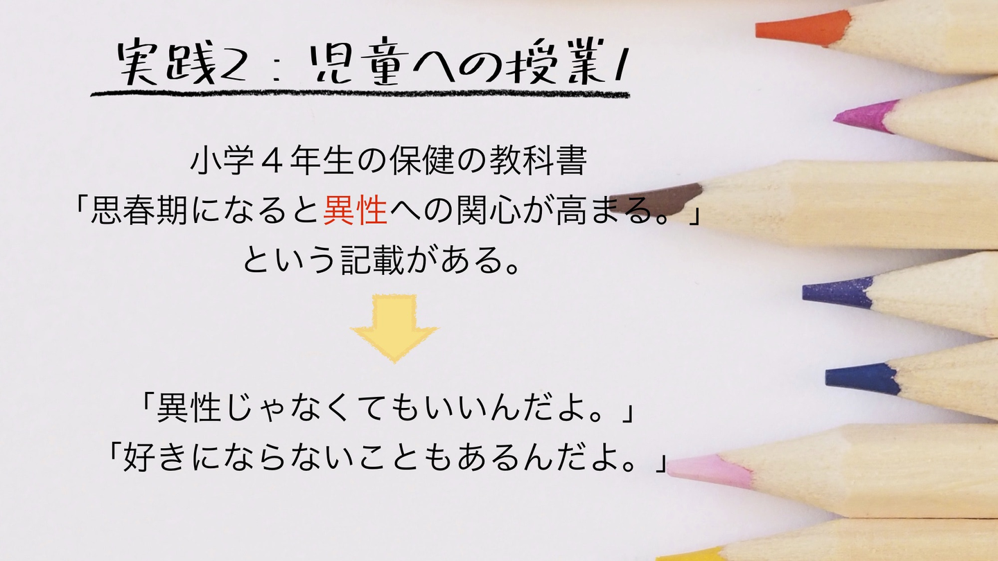 4年生の保健の授業では、思春期の内容に絡めて、「異性じゃなくても良いし、好きにならないこともあるんだよ」という事実を伝えたりもしました。