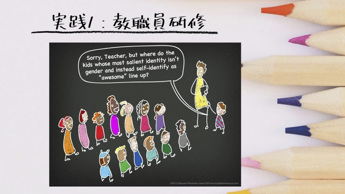 「小学校で男の子こっち、女の子こっち、と並ばせているけど、その子どもたちが自分の性がわかっていなかったらきちんと並べないですよね。」という内容です。実際に、性の認識で悩んでいる子どもたちがいます。