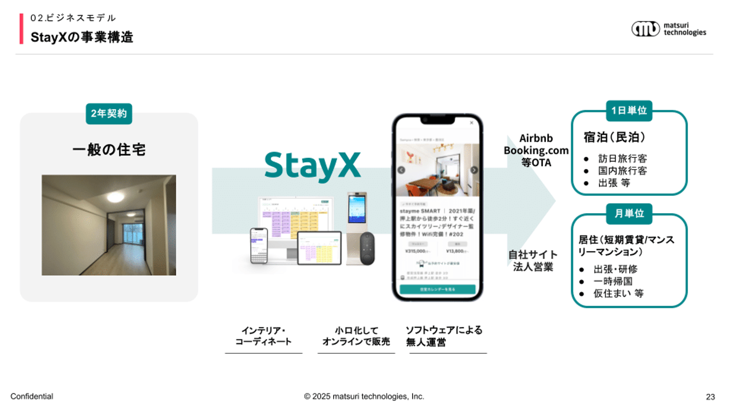 使われていない不動産、十分に活用されていない空間を、宿泊や短期賃貸のニーズに応じて活用できる仕組みをつくる。その中核にあるのが、matsuri technologies(以下、matsuri)が展開する空間の価値を最大化するソリューション「StayX」です。