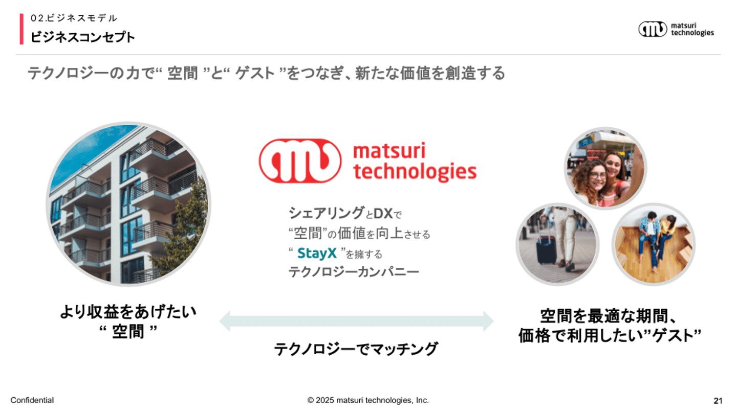 matsuriは、テクノロジーによって空間の使い方を変えることで、人がより自由に移動し、滞在できる社会の基盤をつくろうとしています。