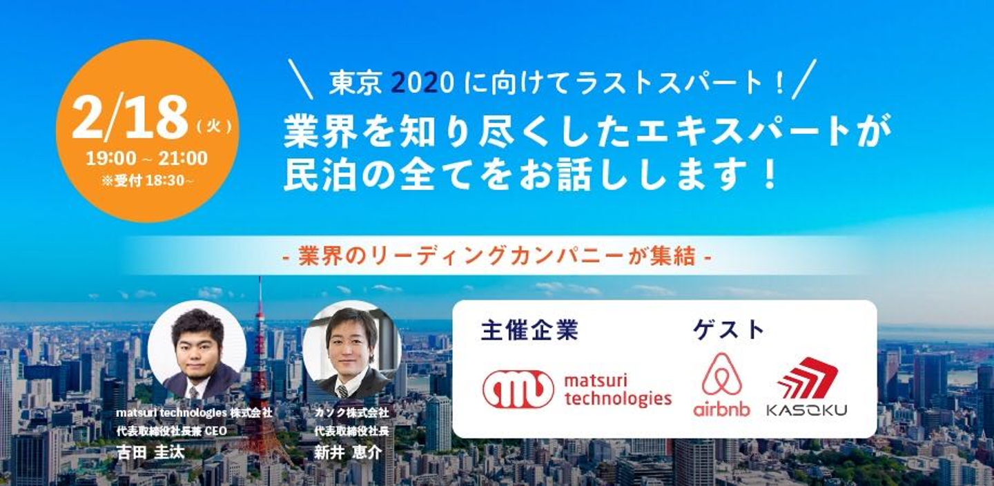 私たちmatsuri technologies株式会社は、業界を牽引しているairbnb Japan株式会社様、民泊運用代行会社のカソク株式会社、民泊業界を率いる個人ホストをお招きしセミナーを開催いたしました!