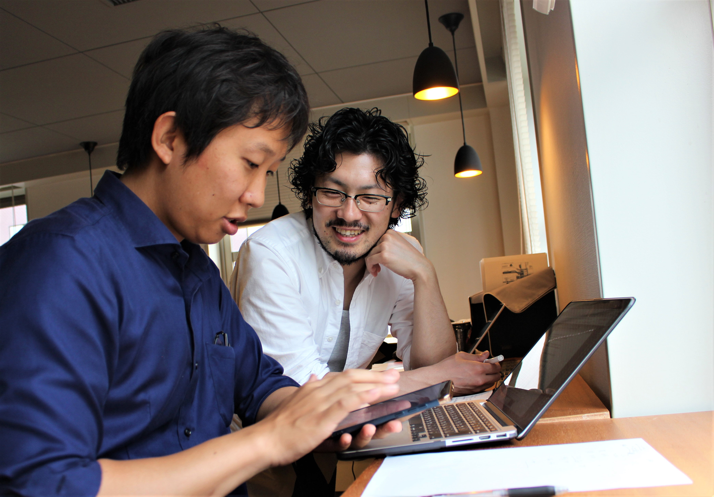セールスの北川さんと今年のカンファレンス企画についてミーティング中の小長谷さん
