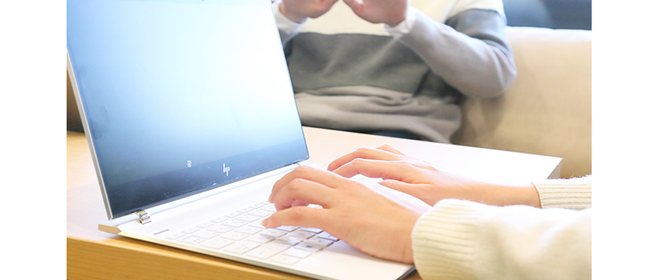 Slackを使用した積極的なオンラインコミュニケーションにより、場所を選ばずスピード感を持った情報共有やディスカッションが行われています。また困ったことがあれば社員同士が積極的に声を掛け合い、フリースペースで議論が始まることもよくある光景。全社員がオープンなワンフロアにいるからこそ話しやすい空間となっています。