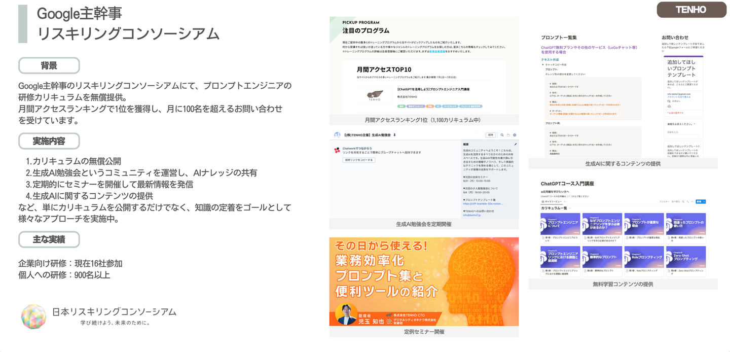 Google主幹事のリスキリングコンソーシアムにて、リスキリングパートナーとして参画しており、