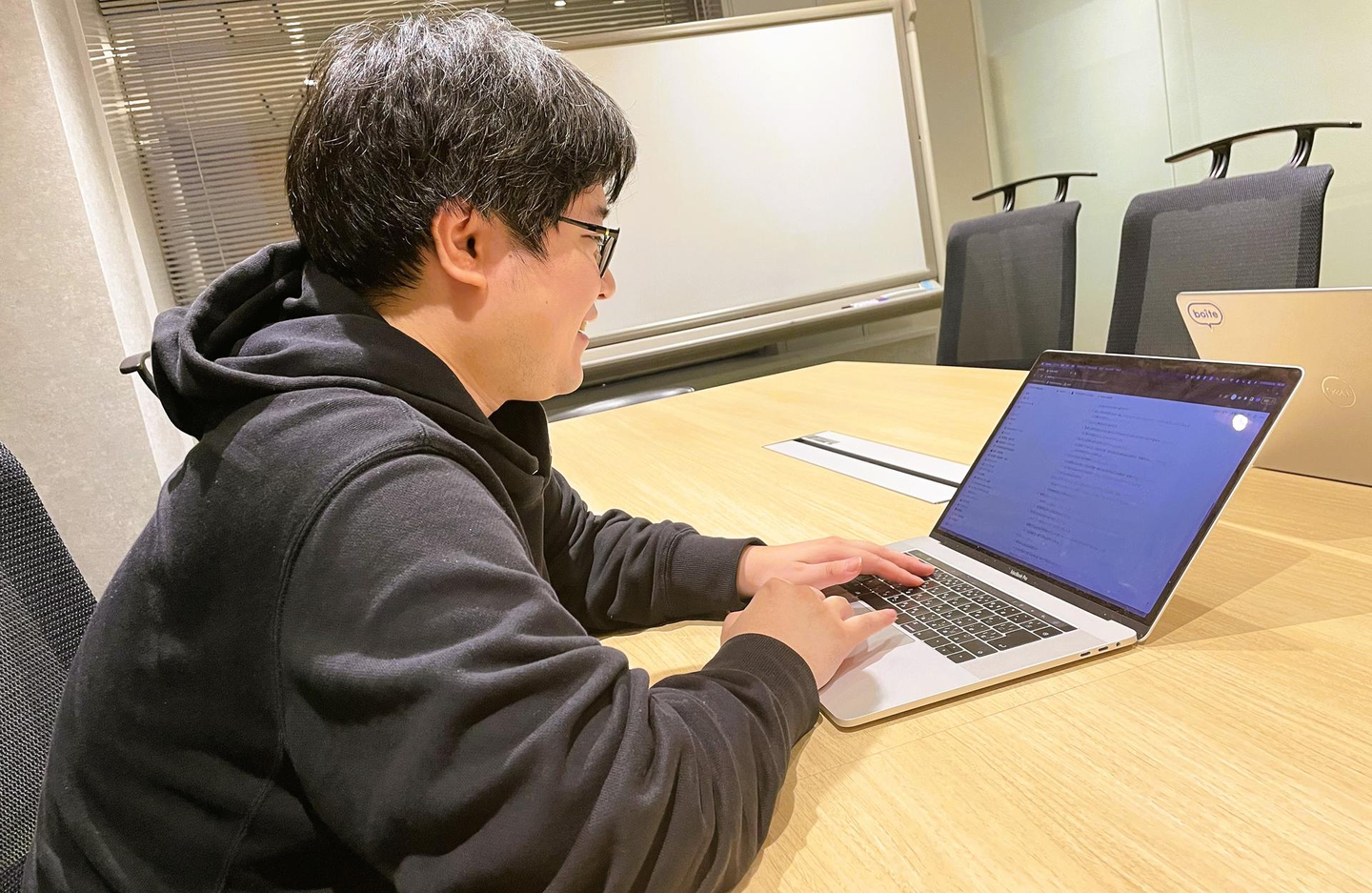 勤務体制としてはフルリモートワーク、Slackでのコミュニケーションが中心です。「何か困ったときは一緒に考えよう」というスタンスなのでGoogle Meetで顔を合わせながら話し合います。ペアプログラミングも行いますので作業ミスを軽減できますし、チームワークの向上に繋がると思っています。基本的にはフルリモートですが、孤立状態にならないよう、困ったときは助け合うようにしています。