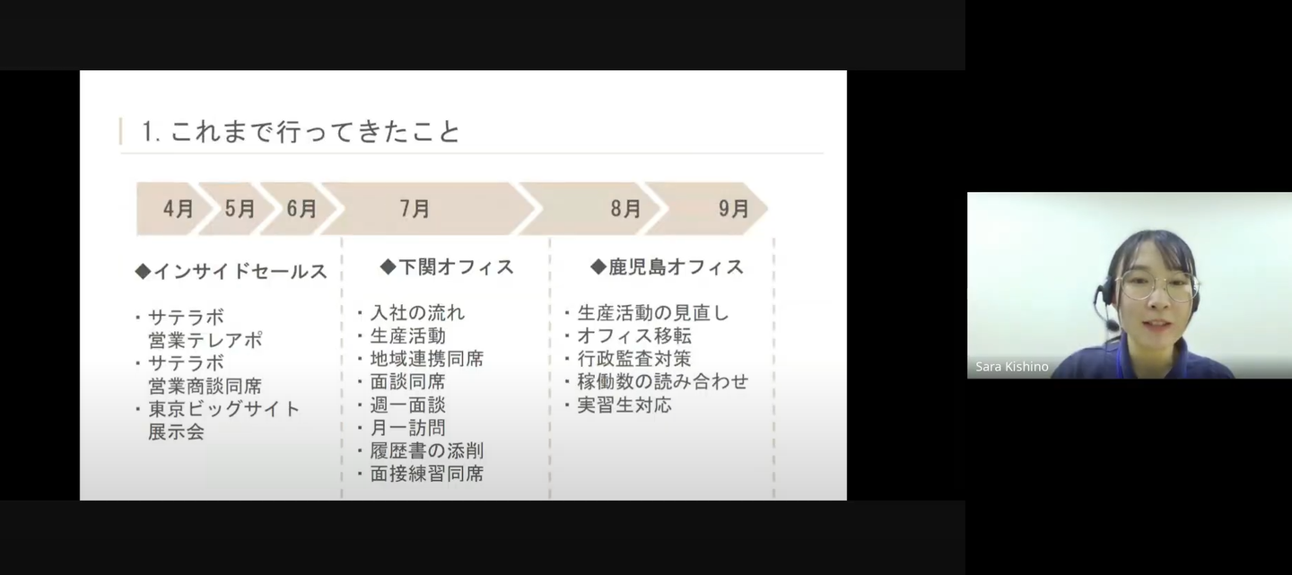 この半年間で、インサイドセールス、福祉現場など様々な部署を経験してきました。