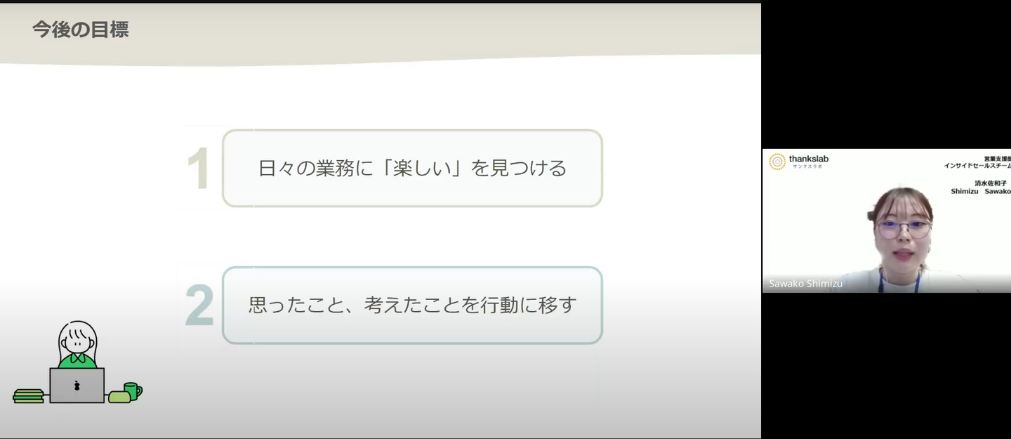 清水さんの考えを積極的に発信し、業務改善に繋げてもらいたいと思いました!