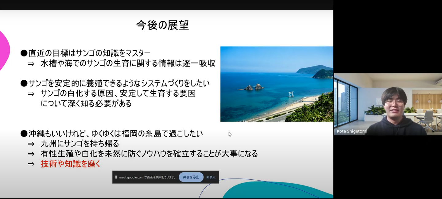 特に、サンゴの陸上養殖を成功させ、白化を防ぐノウハウを習得したいと考えています💪