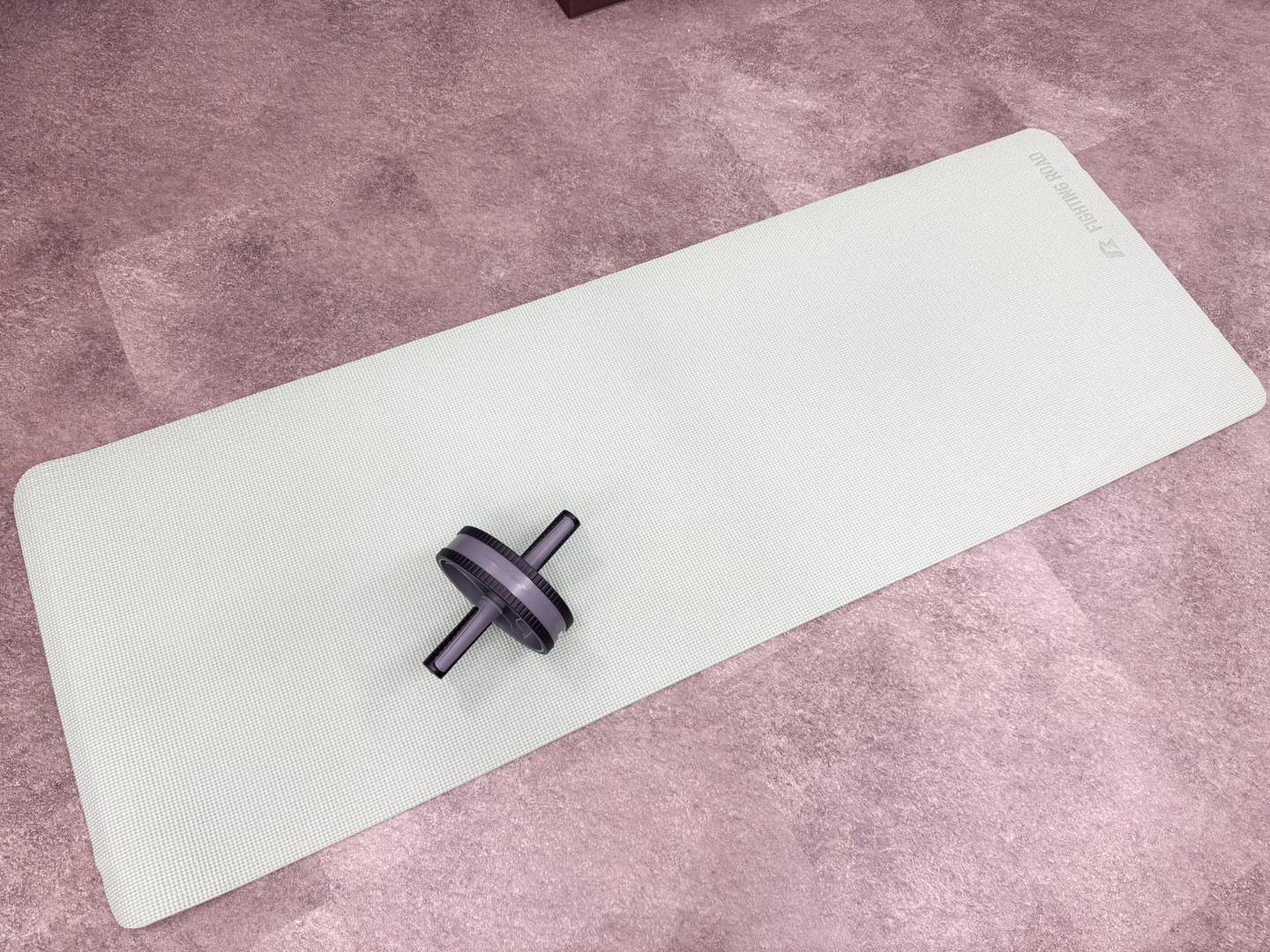 ストレッチグッズや腹筋ローラーが置かれた一角。