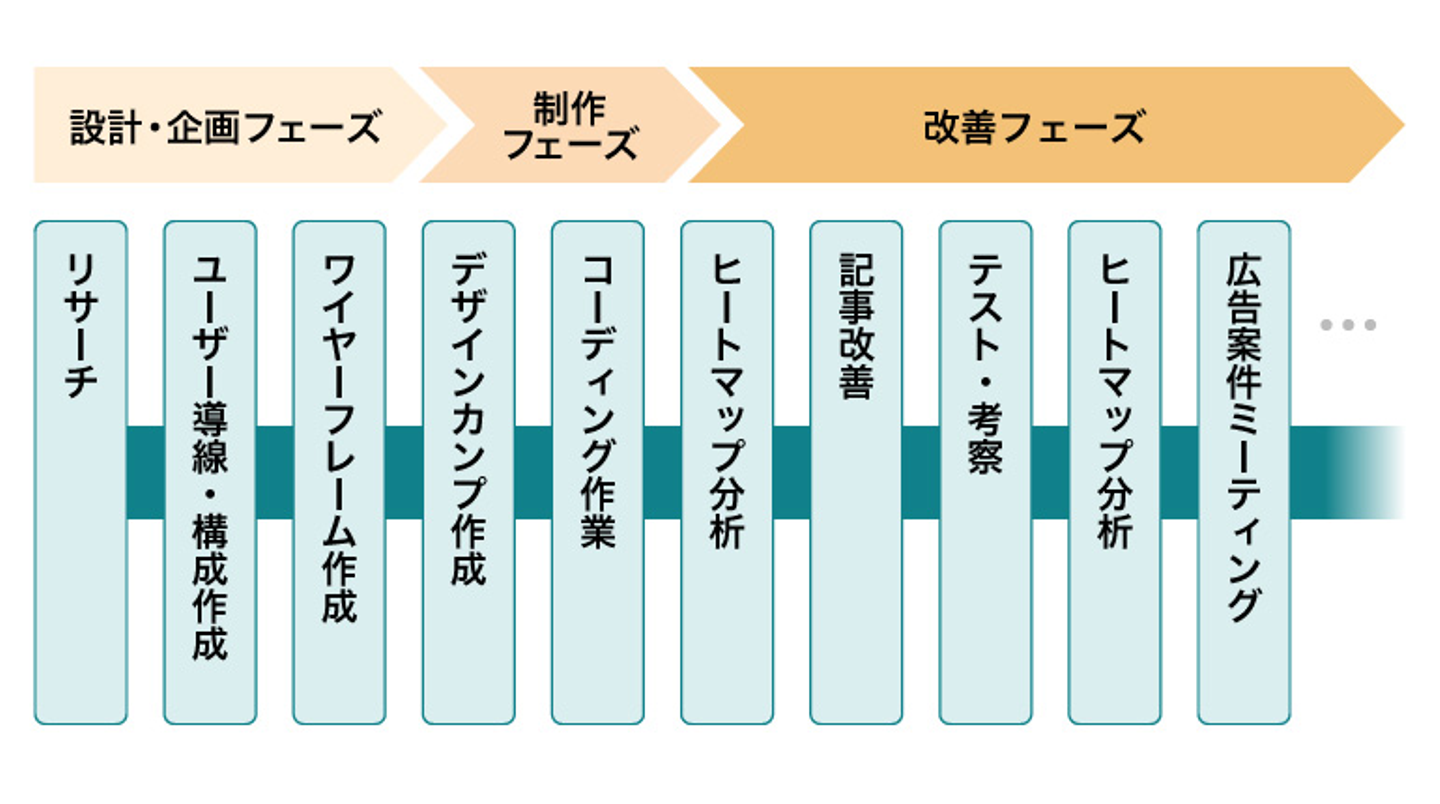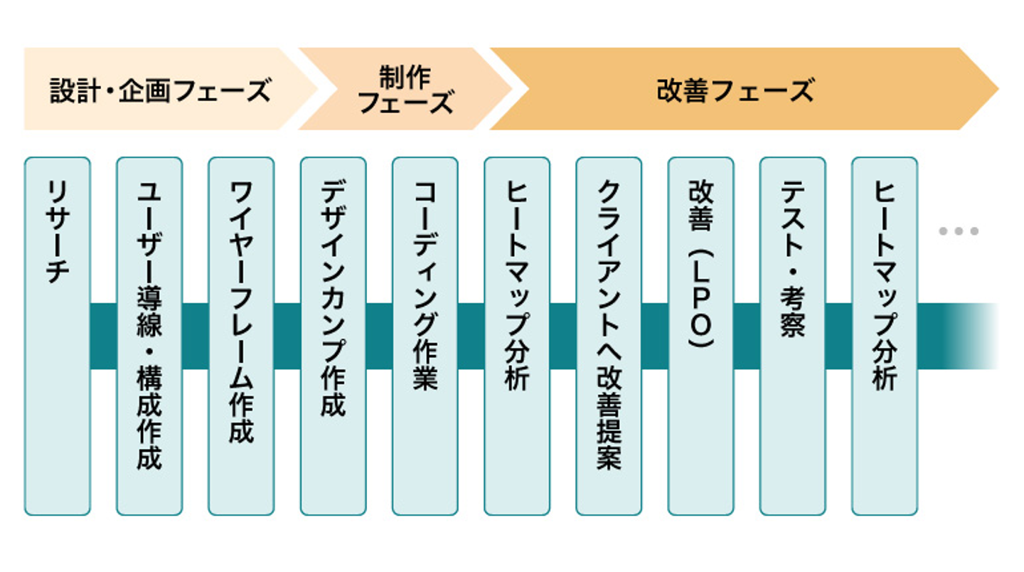 しかしTimingoodでは、制作だけでなくその後の運用も自社で担当しているため、制作物の改善が必要になってきます。これが一番大きな違いです。