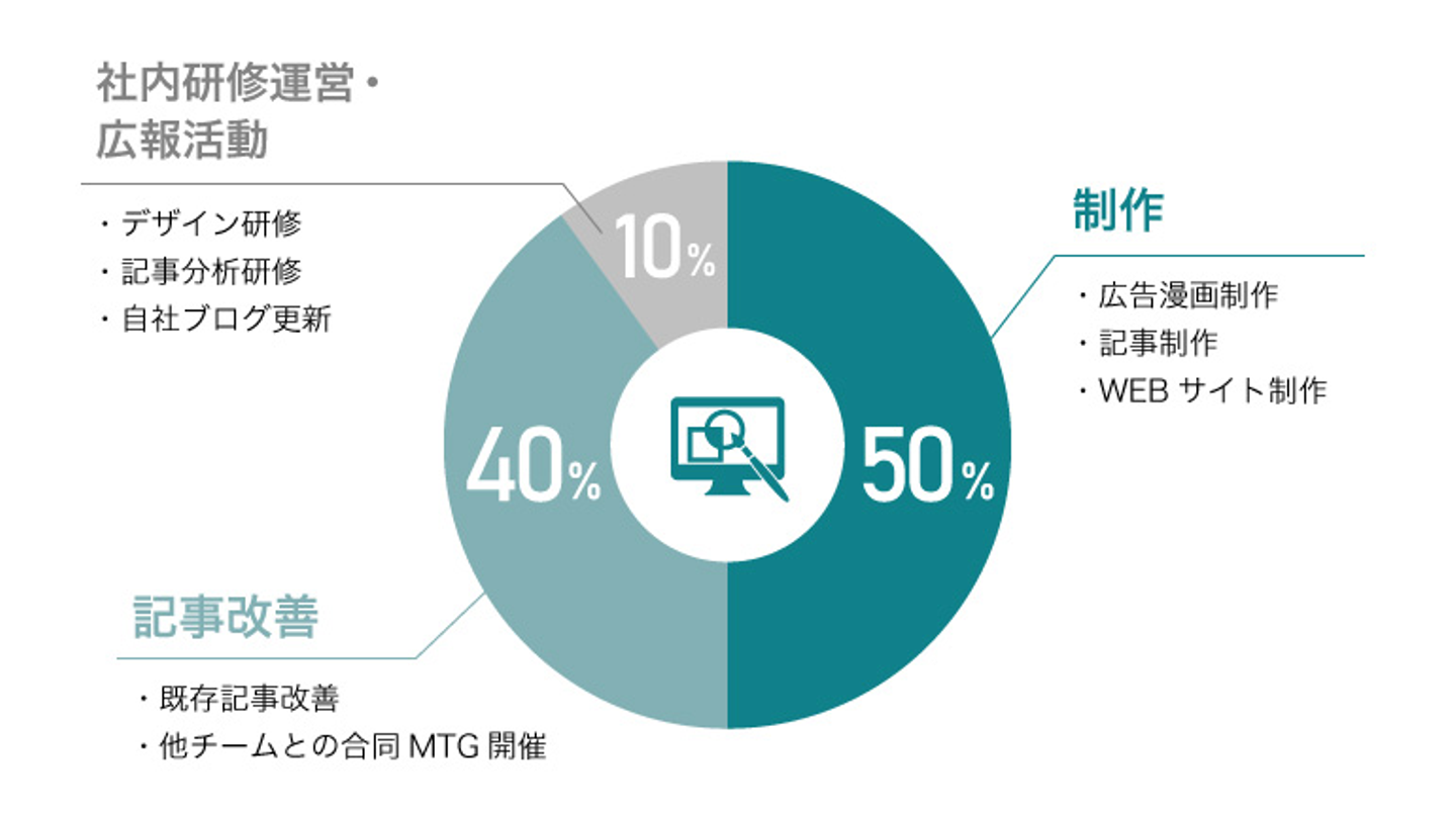 コンテンツを制作したら、広告運用チームのフィードバックを元にコンテンツを改善するのが主な仕事です!