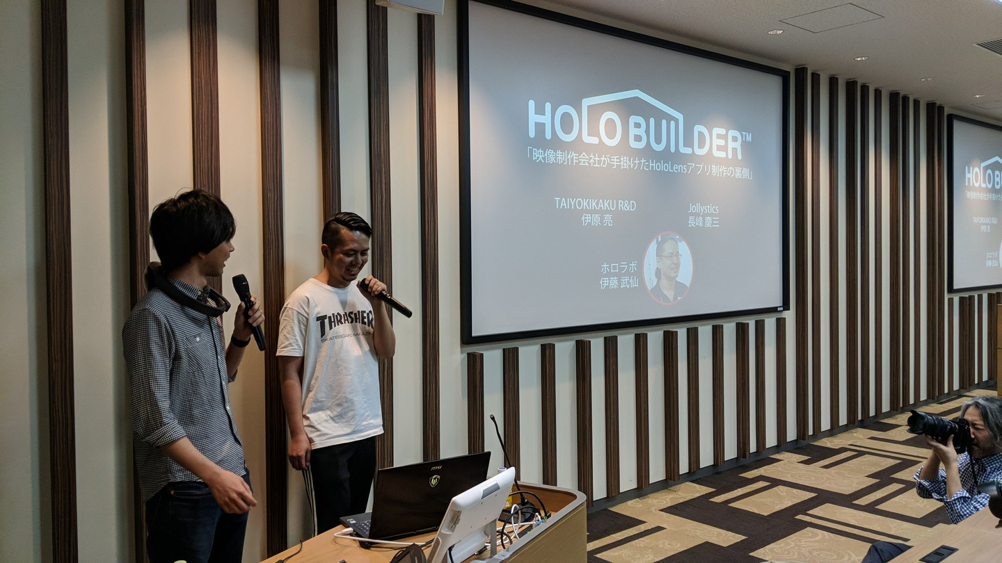 お二人目のセッションは太陽企画の伊原さん、Jollysticsの長峰さんによるHOLOBUILDERの開発に関するお話でした。