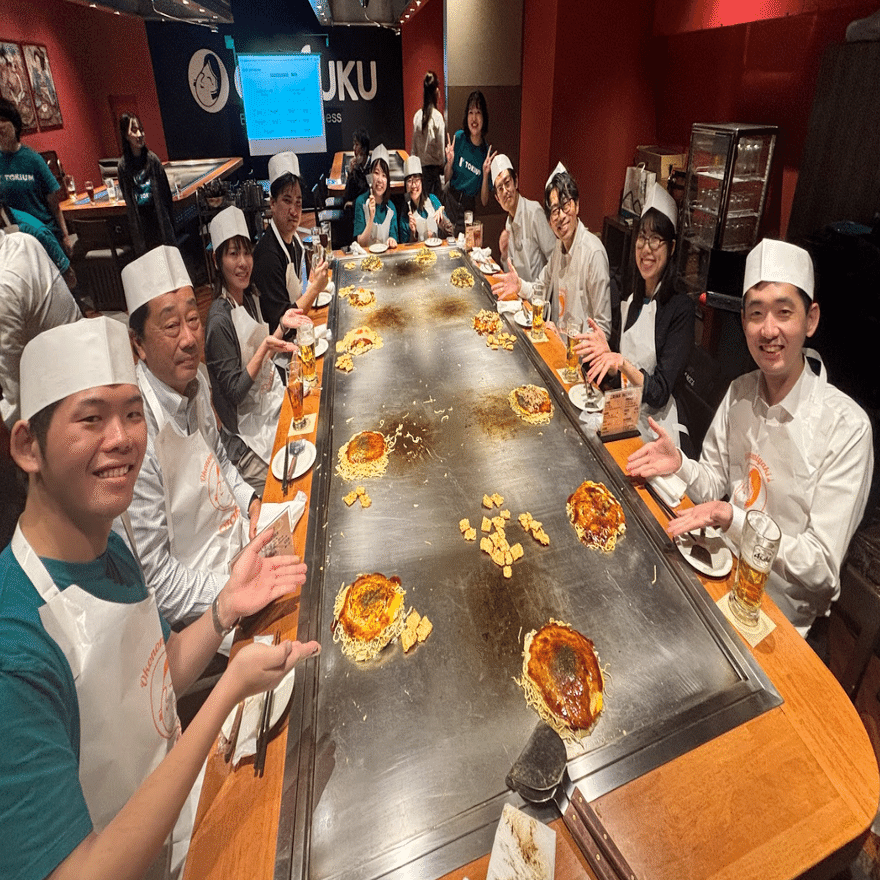広島のフリートークパートでは、初の試みとしてお好み焼き体験を行いました。お客様とTOKIUM社員が各テーブルで協力しながらお好み焼き作りに挑戦。 普段はできないこの貴重な体験は、参加者同士の距離をぐっと縮め、リラックスした雰囲気の中で交流をより一層深めることができました。