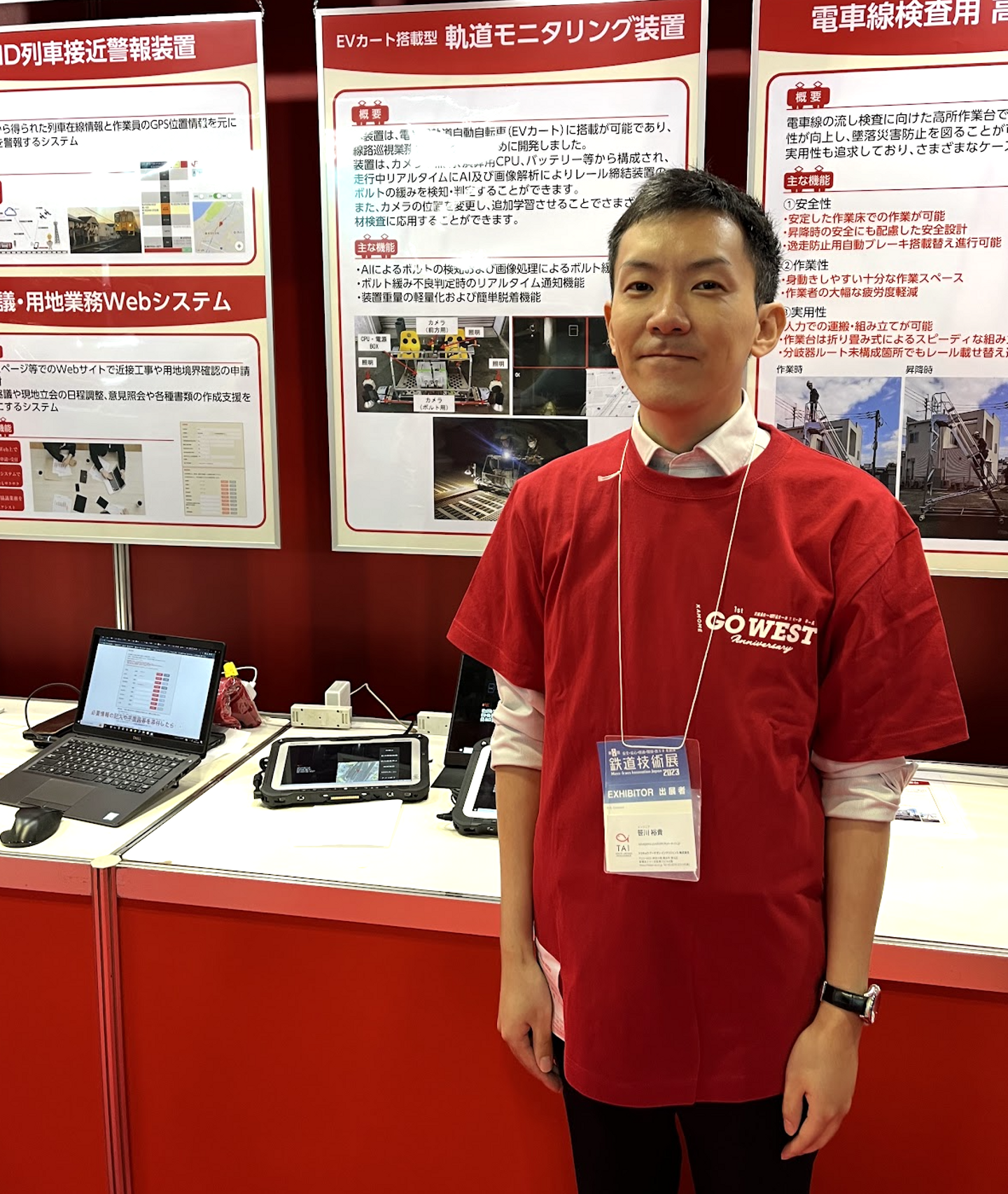 一つは、九州旅客鉄道株式会社の「軌道カート」プロジェクトですね。線路上を走る点検用のカートにカメラや照明を搭載し、AIで異常を検知するというもので、UI設計から筐体設計、ハード選定まで、ほぼすべてに関わらせてもらいました。最初の提案から量産まで、全体を通してやりきったことが自信にもつながりました。また、鉄道技術展でJR九州様と共同で出展させて頂き、顧客と直接会話できて反響を得たことも良い経験になりました。展示会で支給された西九州新幹線の記念Tシャツは今でも宝物です(笑)。