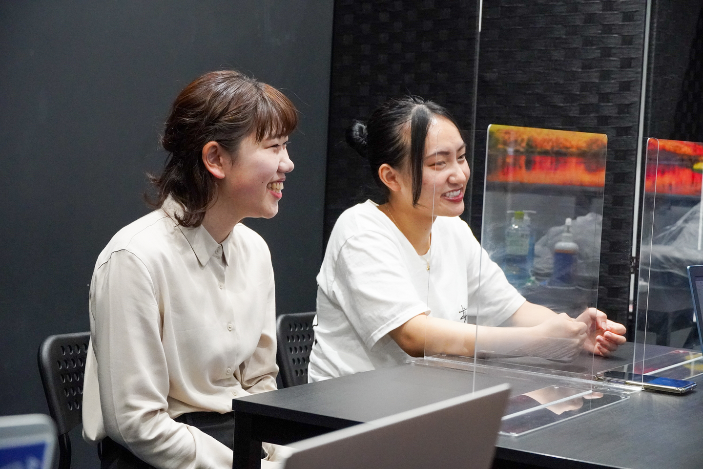 新井(写真右);立教大学2年、理学部物理学科の新井優希(あらいゆうき)です。白井さんと同じく、 web制作事業の営業を担当しています。本日はよろしくお願いします!