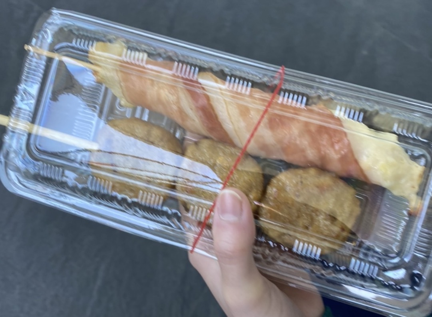↑サービスエリアでベーコンチーズ巻きとつくねを買ってくれたりくさん