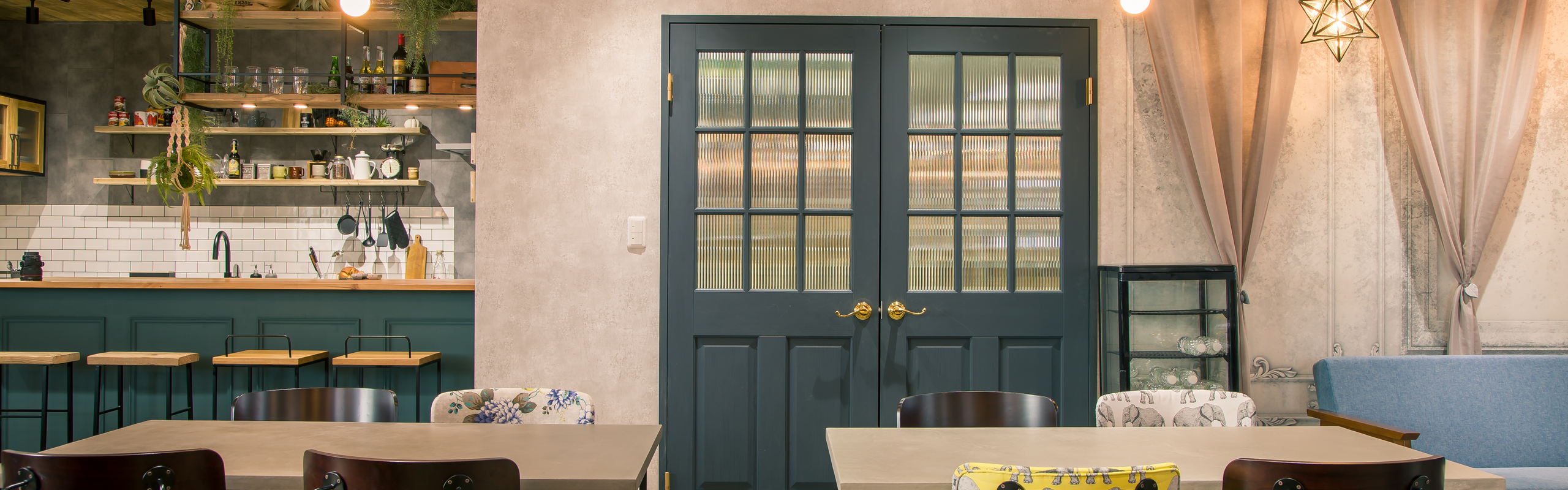 インテリアやDIY商品を3万5000点以上取り扱う友安製作所のオフィスは、自社商品でコーディネート。壁や床、家具、雑貨などなど、こだわりの商品で溢れ、まるでショールームのような空間です。