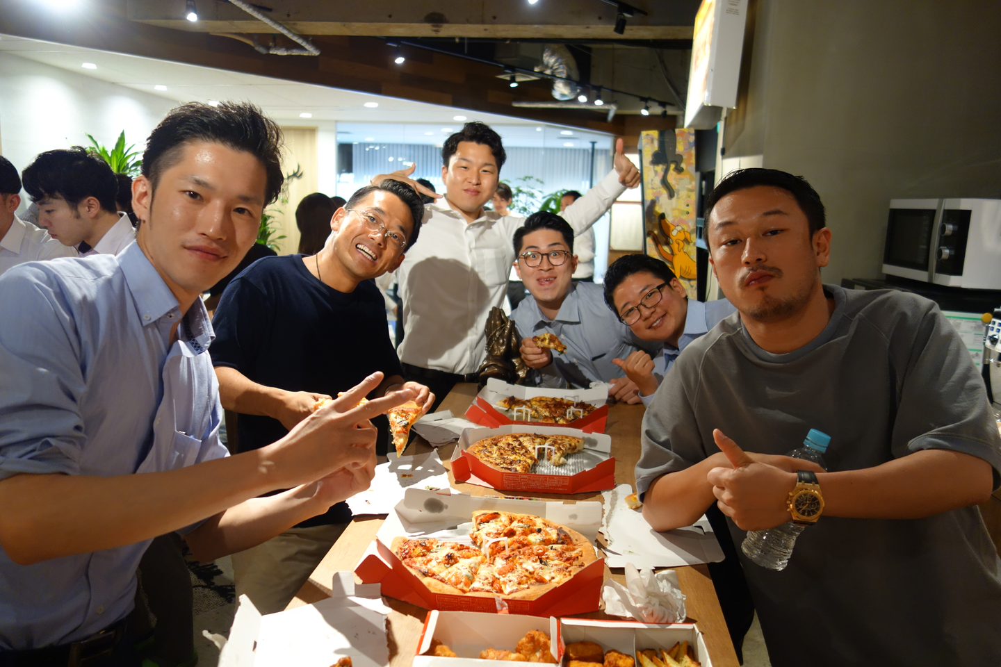 TonTonは社員交流は多いほうですが、このような企画を実行してくれたおかげで交流できた社員もちらほら見えて、楽しい初のピザパーティーはものの20分で終了しました。(笑)