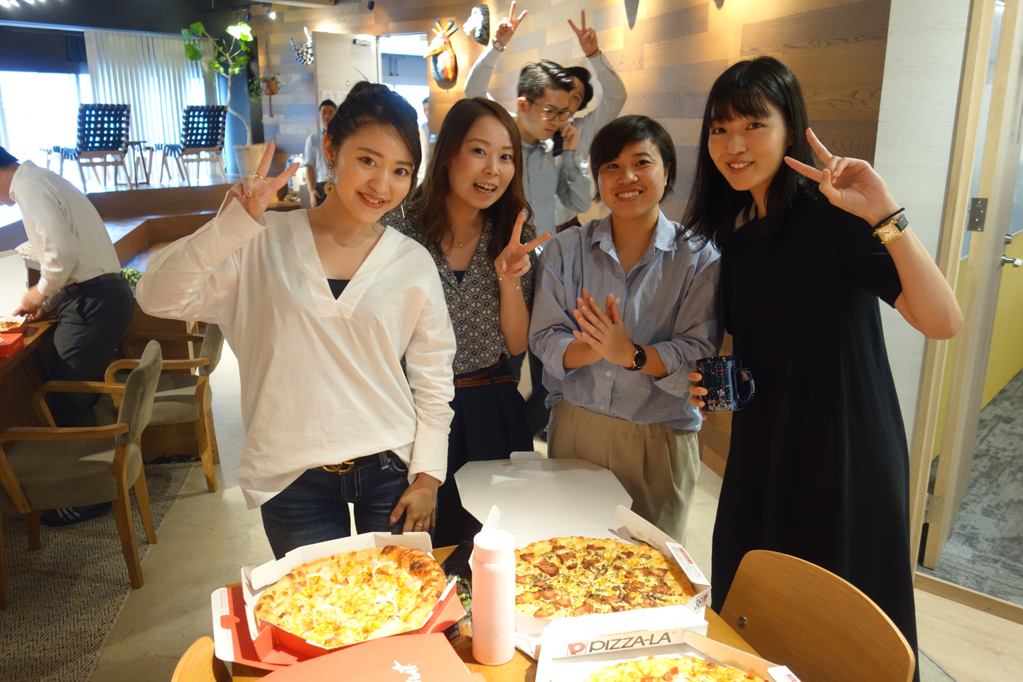 ここには全員写っていないですが、皆でランチという機会もないので、続々参加してくれ、想定より参加人数が多くピザを追加注文するという事態に!!!