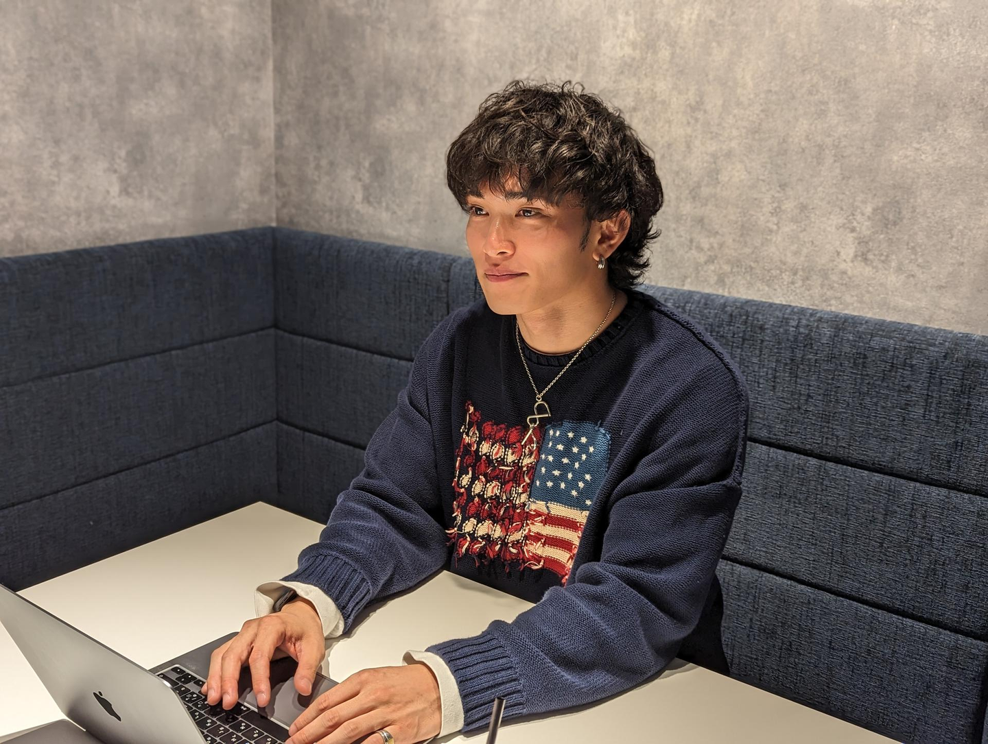 あとは実際に最終面接でオフィスに行かせて頂いた時に、初めて社長とお話して、なんか単純に社長のオーラがかっこよすぎて。(笑) かっこいい大人だなって。(笑)