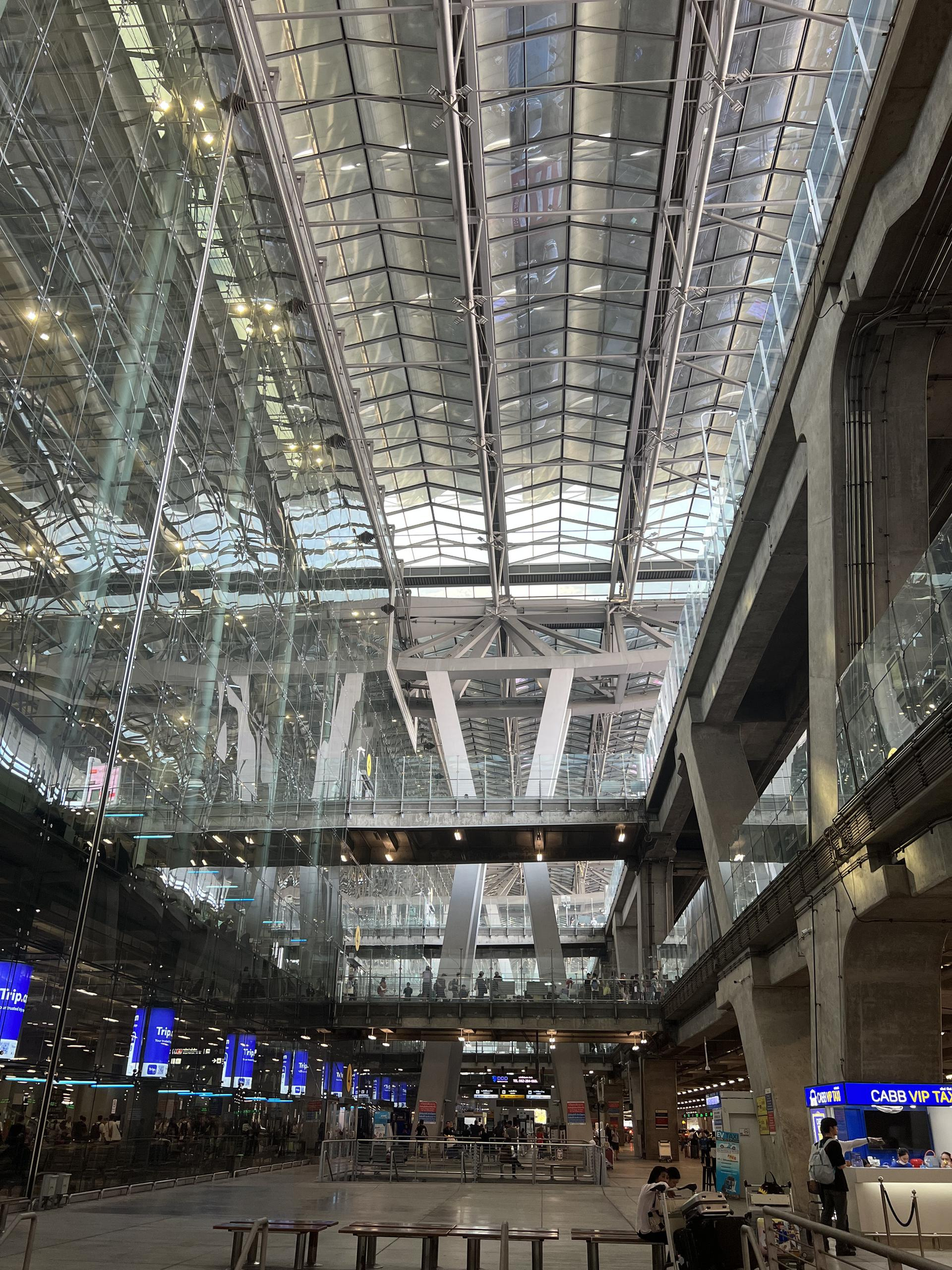 バンコクの空港はガラス張りで、デザインが施されていた印象でした。