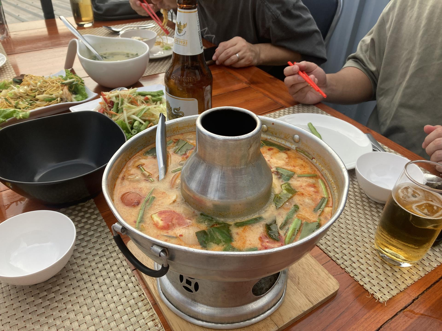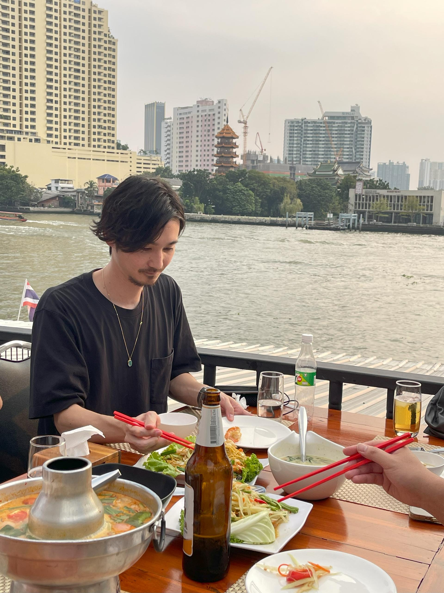 三大寺院巡りを終えた後は、川沿いのレストランでバンコク最後の食事。