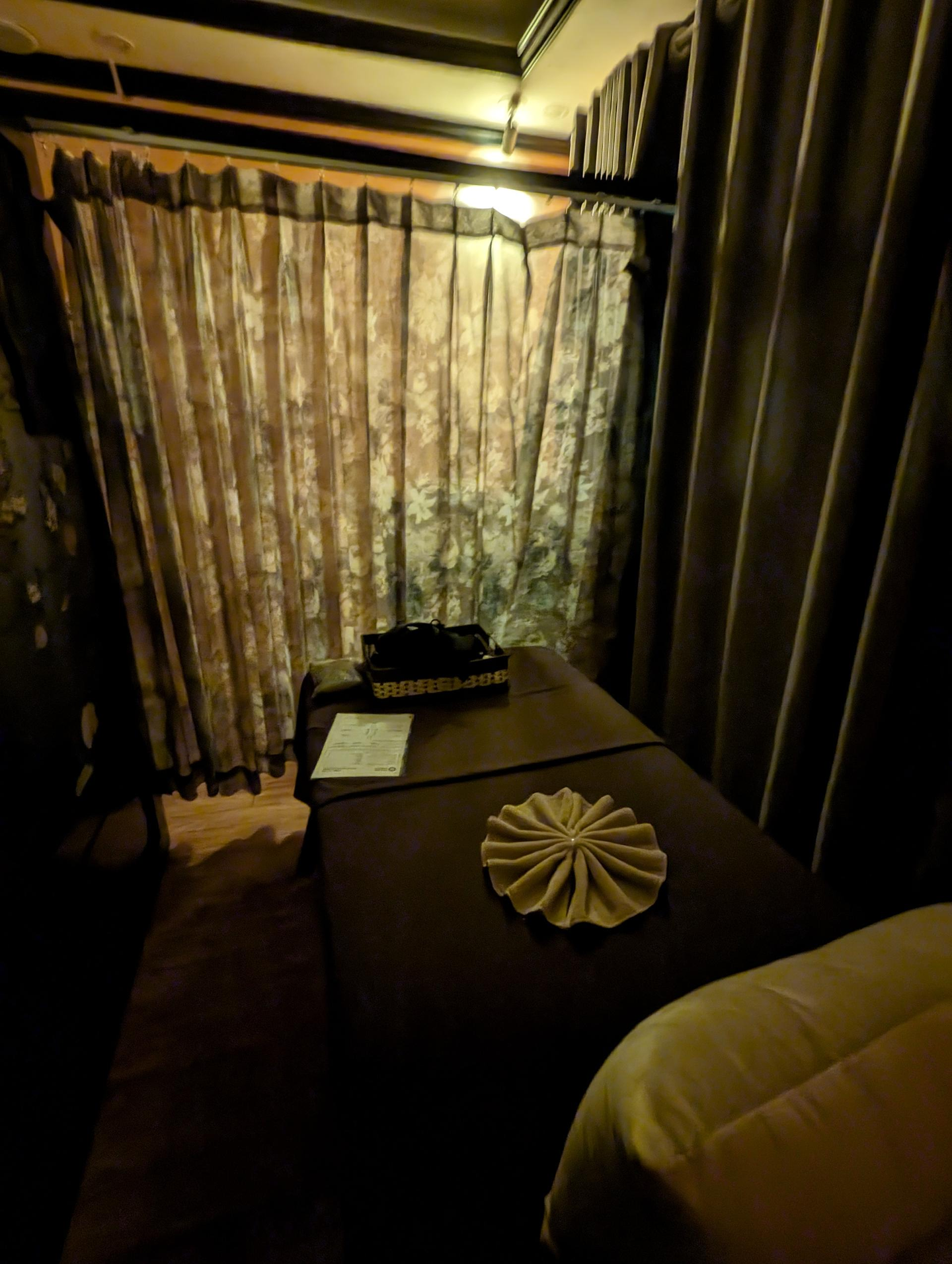ゴリゴリ痛いマッサージも旅の思い出で面白いかなと思い、「ハードモードでお願いします」と強気に出た私。途中背中のマッサージで呼吸が止まりそうになりましたが、全体的にかなり満足度の高いマッサージでした。