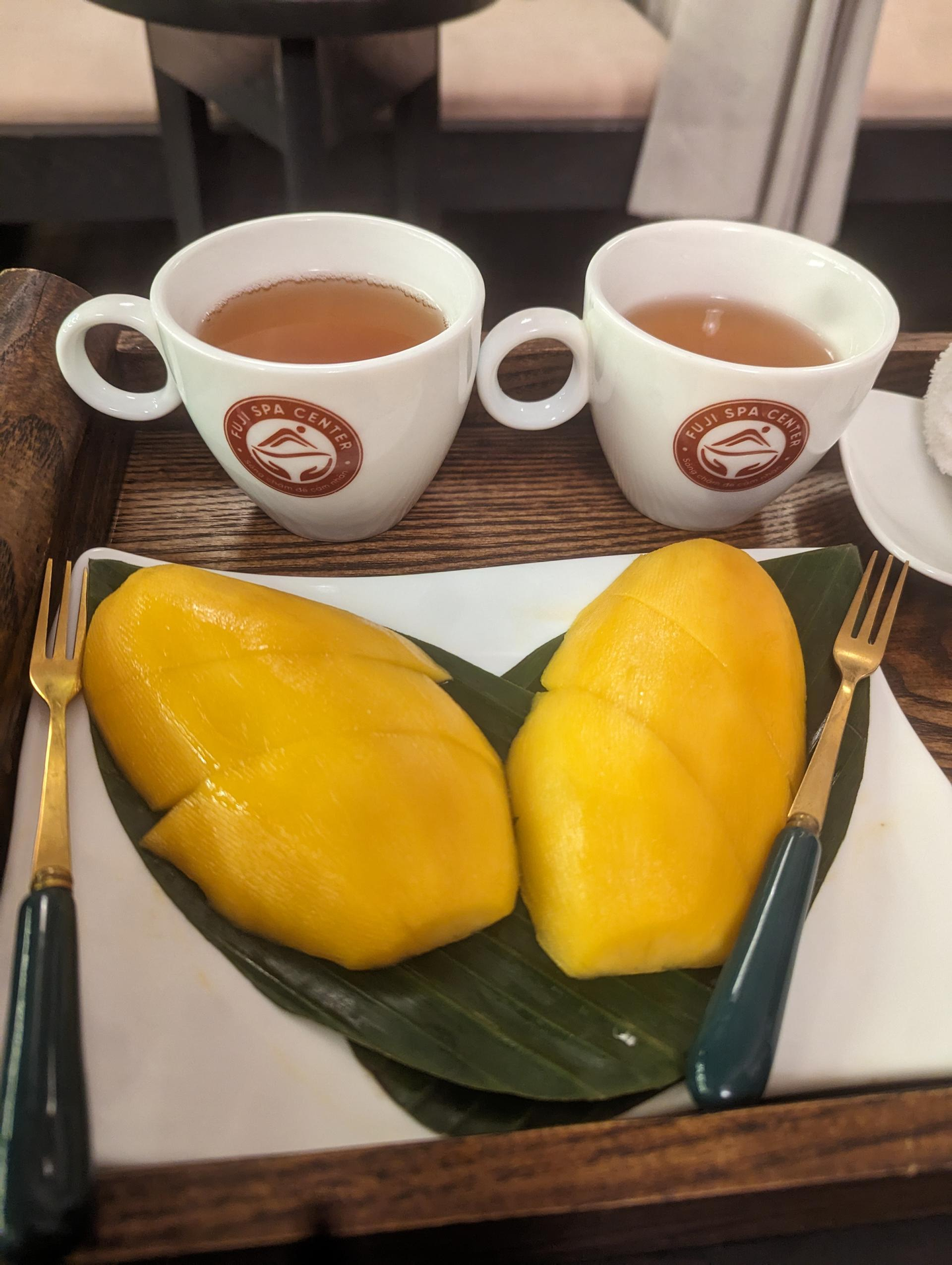 こちらのお店ではシナモンティーと大きなマンゴーが出てきて、最後の最後まで大満足でした。