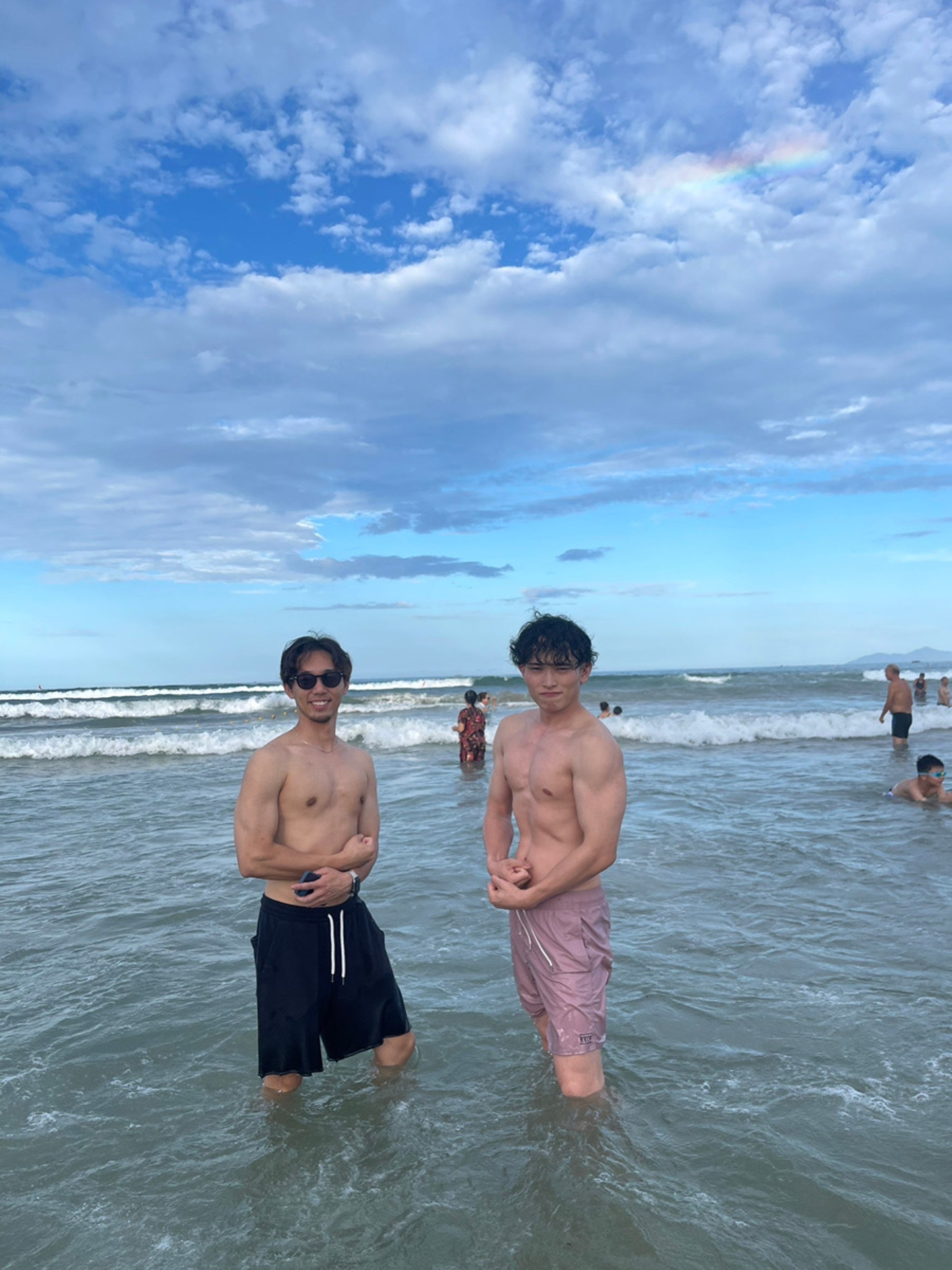 最後にキレイな海とマッチョな二人の写真をご覧ください。笑