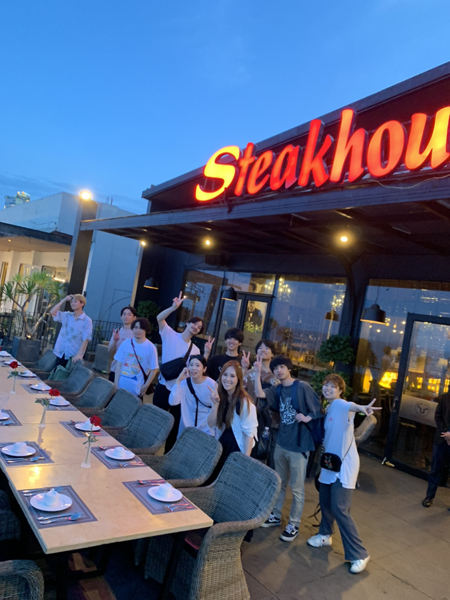 最終日の夜は、みんなで海沿いのステーキハウスで食事を楽しみました!
