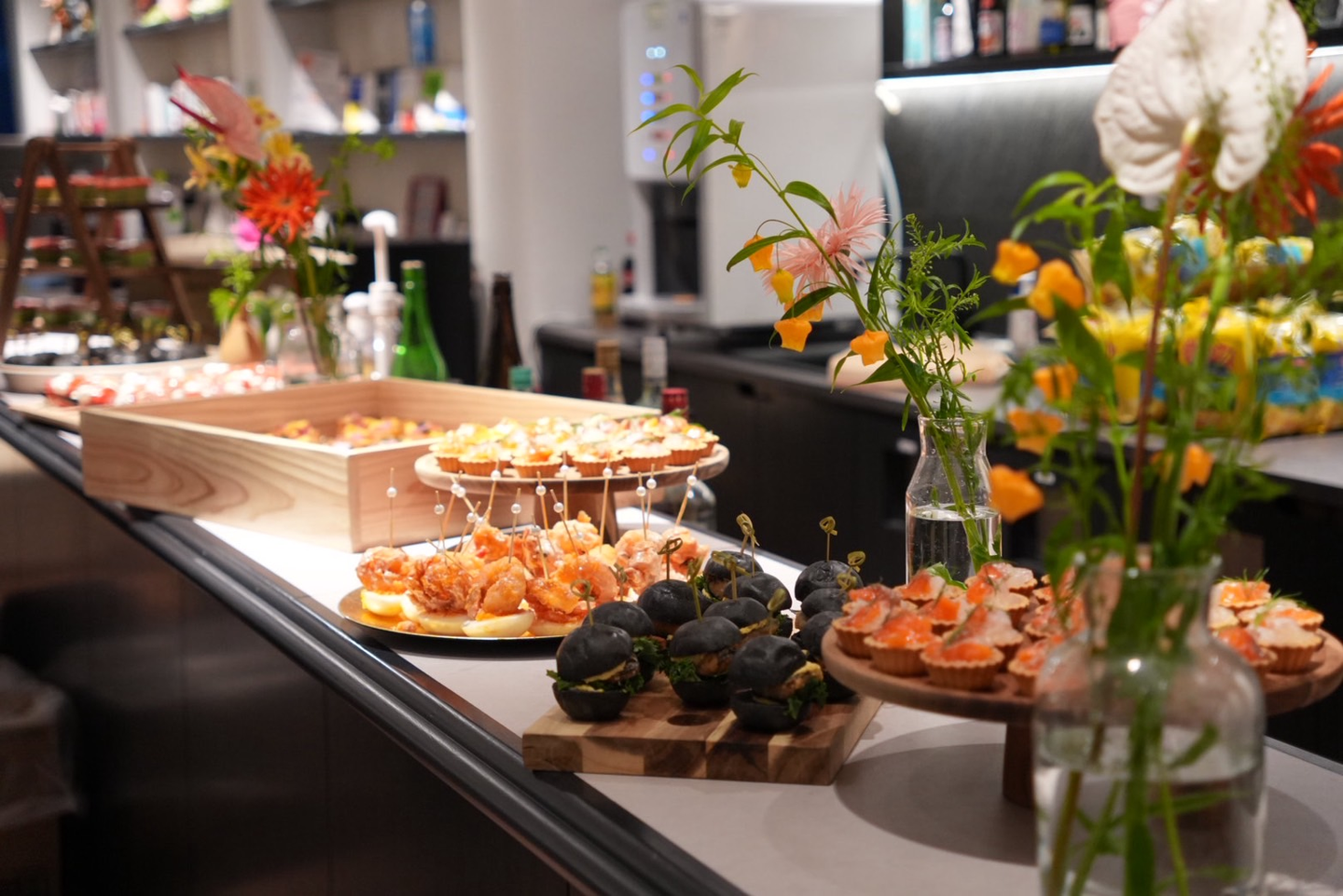 式の後は、彩り鮮やかなオシャレな料理を囲んでの懇親会。