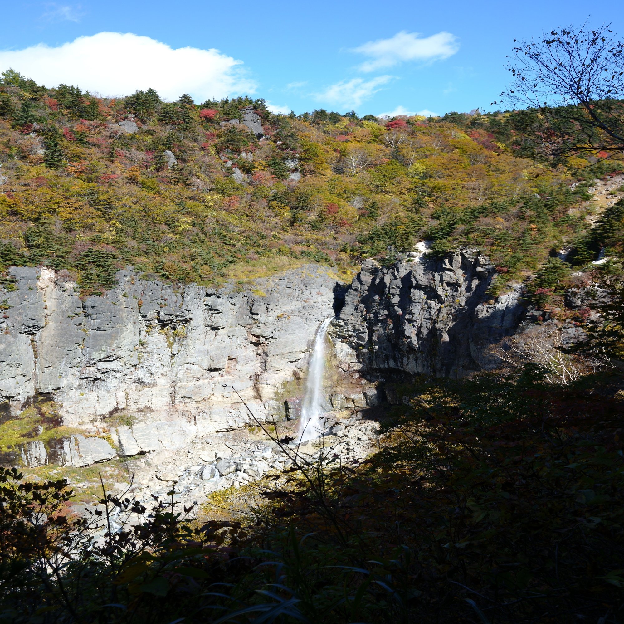 美しい滝と、早くも紅葉が始まっていました。