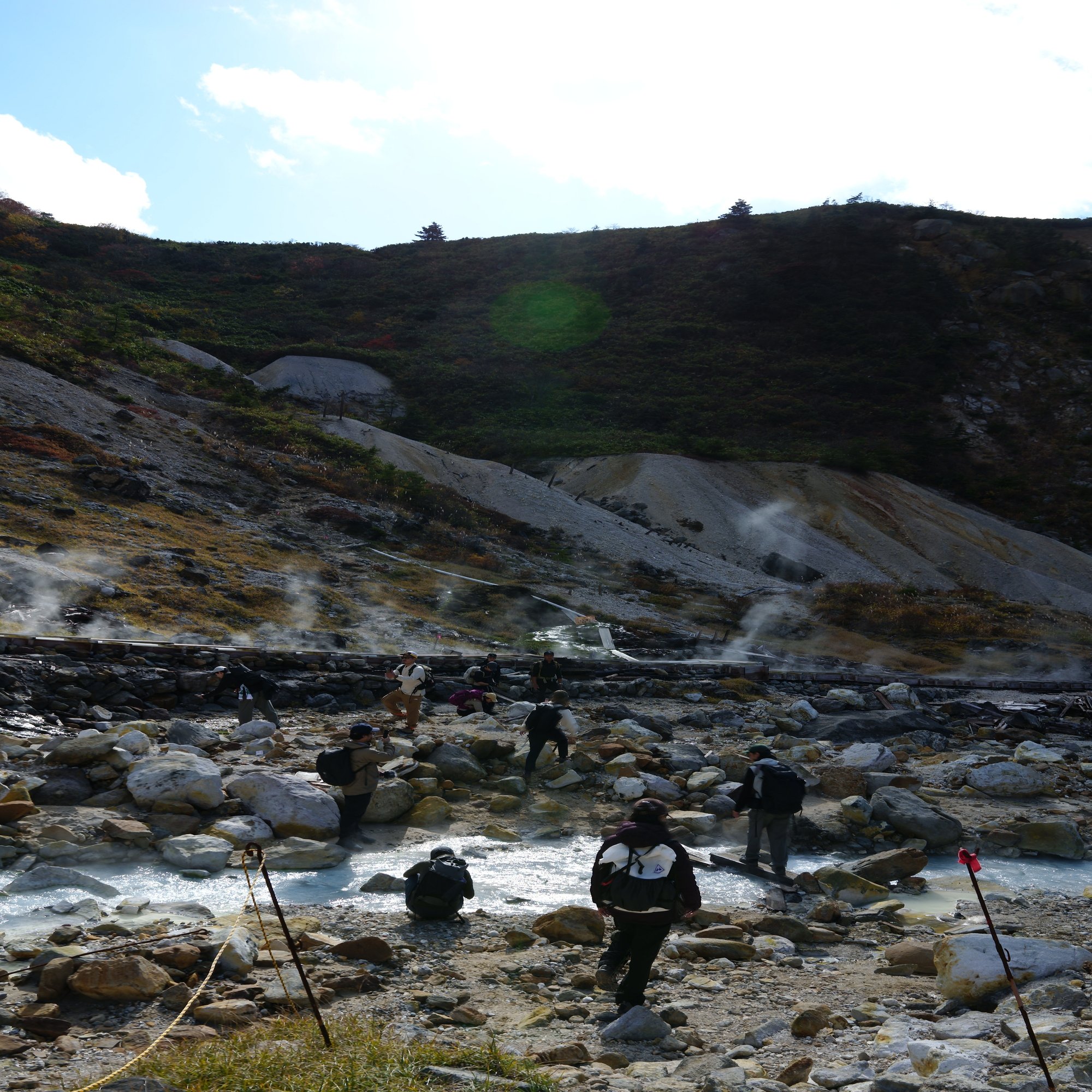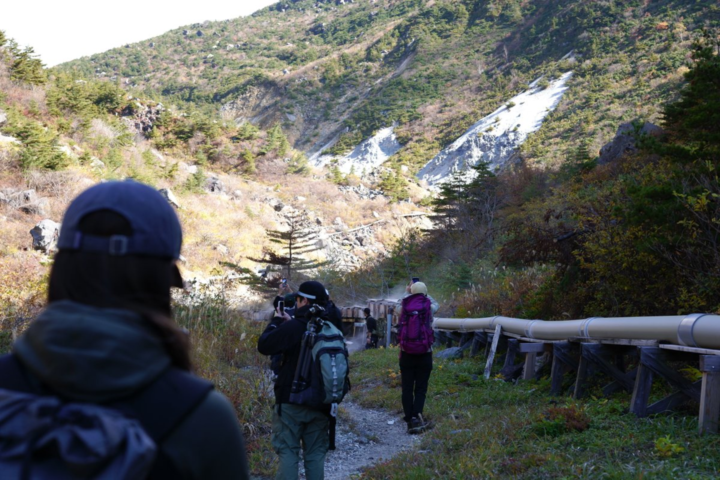 こもりん:はい、登山口に到着してからも、 ガイドさんが準備運動の後にさらっと説明をしてくれたんですけど、その説明の中で(野温泉ということでガスが発生している区域なので、今回のハイキングは何かあっても)「自己責任で!」と言われた時は、切り替えが入りましたね笑