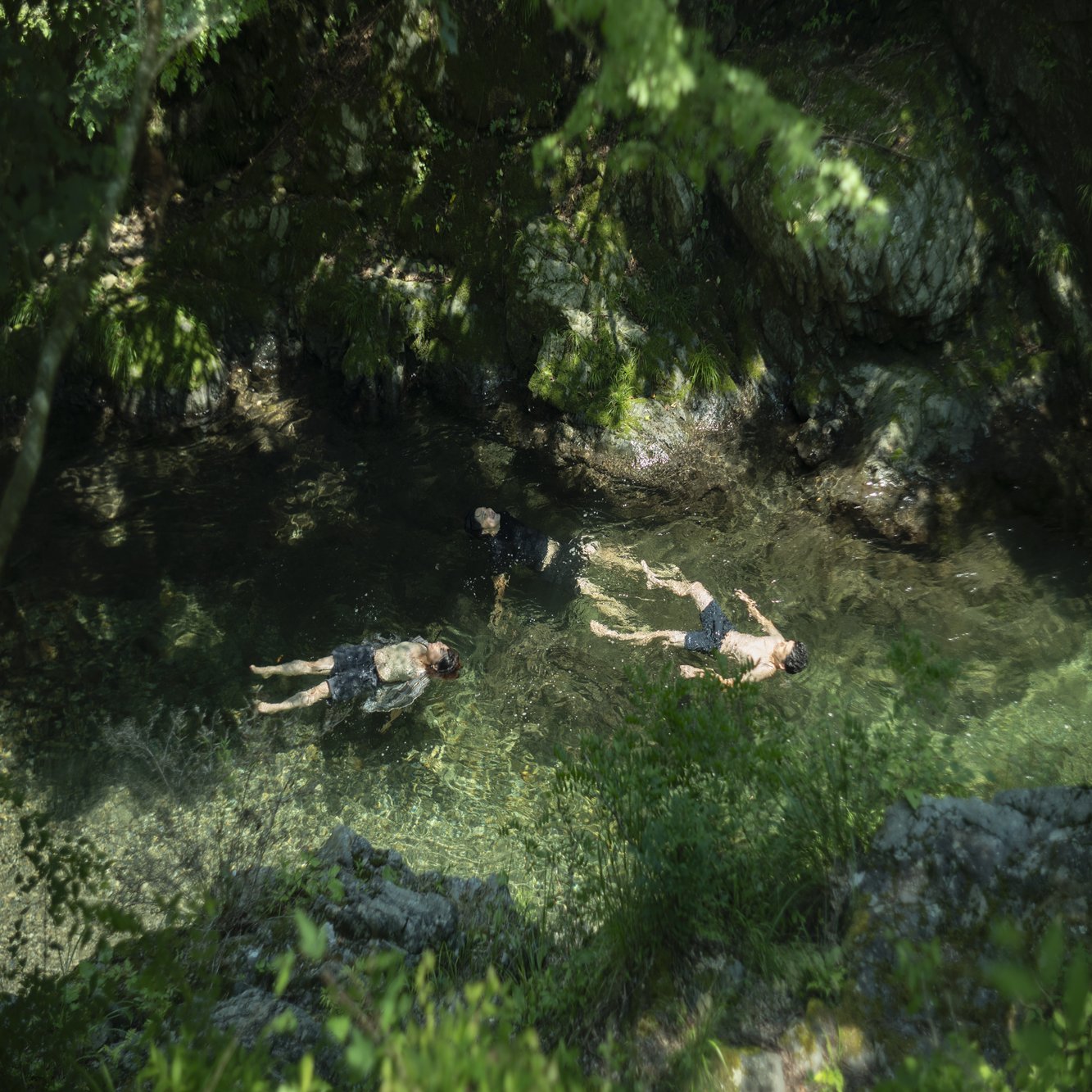 潜る深さのある場所から、流れるプール、浅瀬まで、子どもも大人も楽しめる変化に富んだ流れが広がります。岩や石の形などにより変化する深い緑やブルーといった川の独特な色も、思わずずっと眺めてしまうような、美しい 景色です。