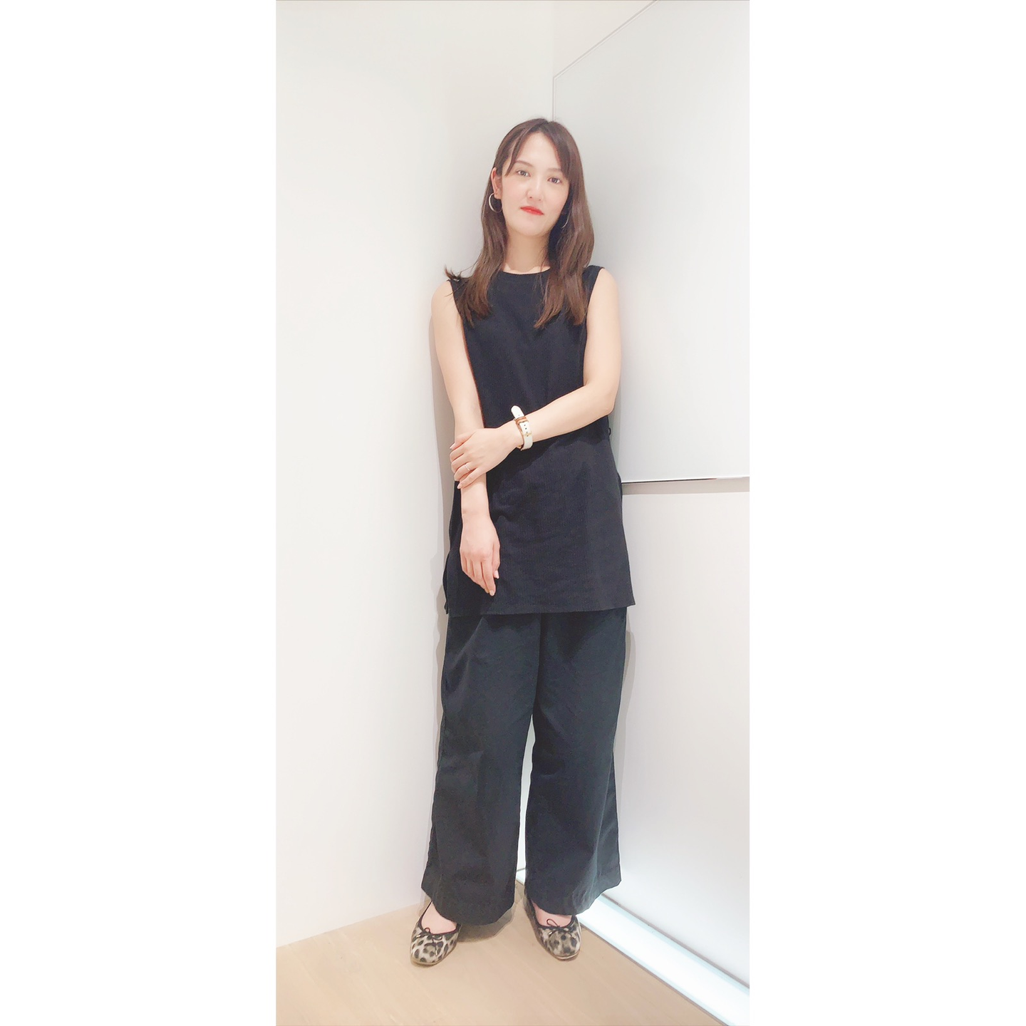 圧迫感が出ないように、あえてぺったんこ靴をチョイス。