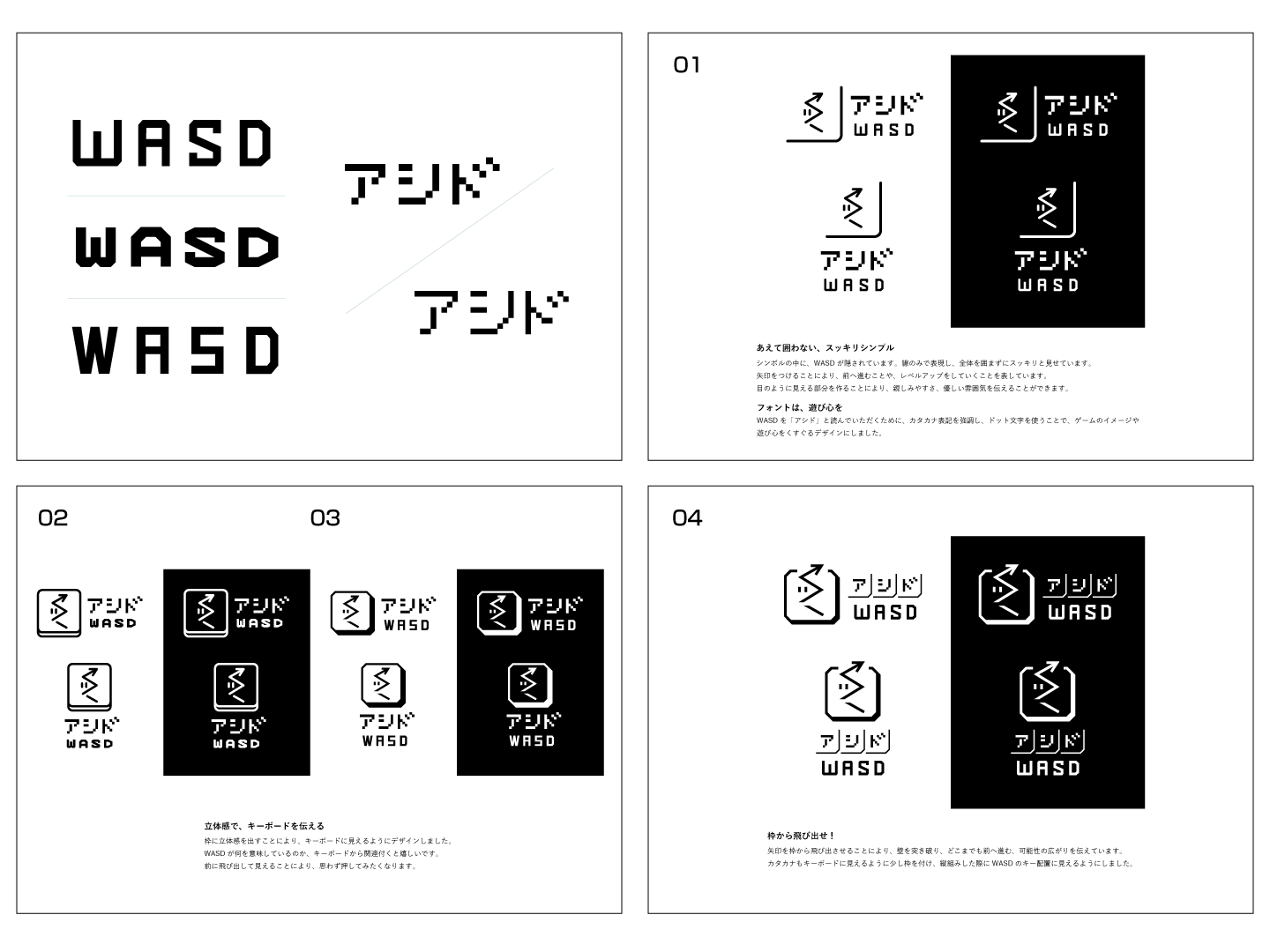 シンボルにはWASDの文字が隠されていたり、ドット文字で遊び心を、、と色んな思いがギュッと詰まっています。
