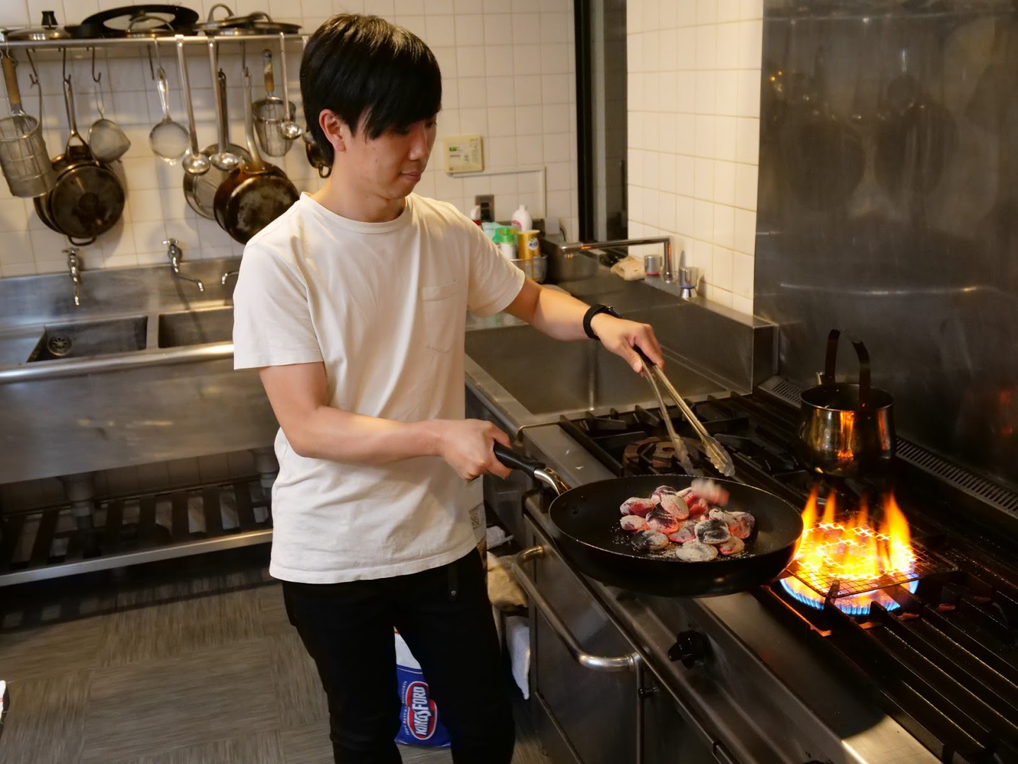 しかし、もちろん前日のBBQでの”学び”は生かさなければならない。火起こしであれなんであれ、PDCAを回してこそのスタートアップ。「ここの炭は火がつきにくい」ということを前日に知った僕たちは、ガスコンロにて炭を直火で炙ることにした。結果、炭への着火はめちゃめちゃうまくいった。