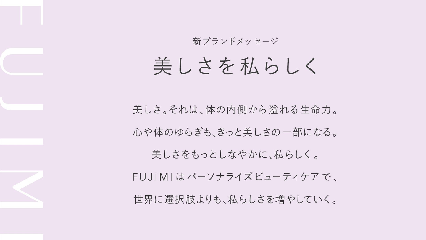 弊社が運営するパーソナライズビューティケアブランド FUJIMI は、ロゴやブランドメッセージを刷新し2023年1月23日(月)より再始動します。