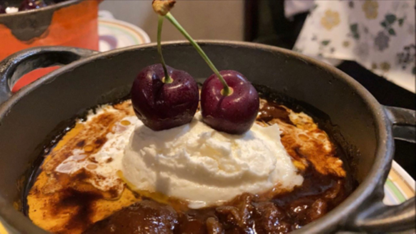 ★会社の近くにあるドイツカレー屋さんの今週のカレーで牛すじとアメリカンチェリーのカレー(サワークリーム付き)