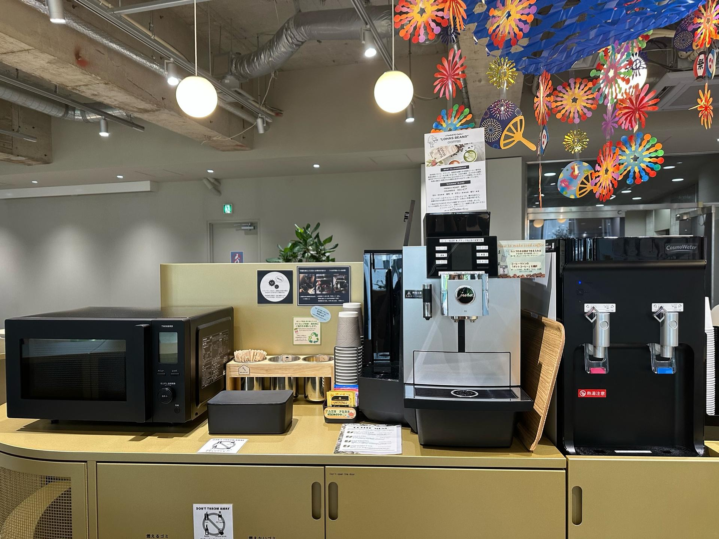 コーヒーマシーンなどのカフェスペースも設置されています☕️