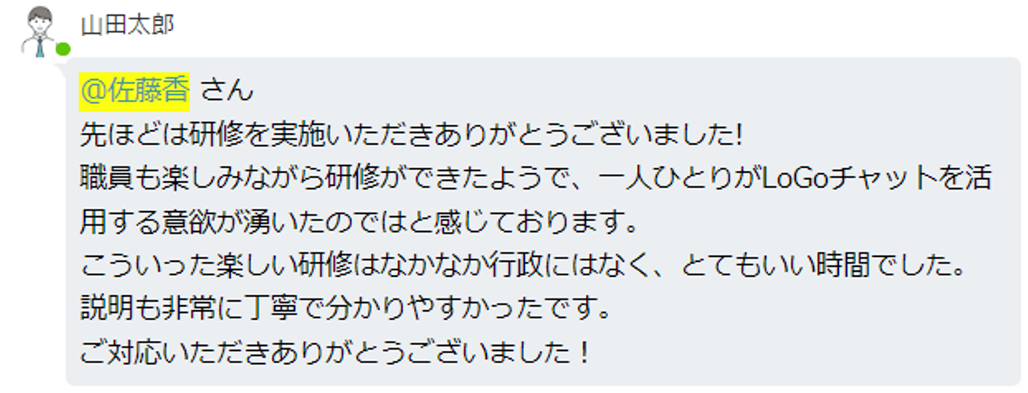 佐藤:最も大きなやりがいを感じるのは、自治体様の働き方が目に見えて変わっていく瞬間を目の当たりにした時です!以前はメールや内線電話が主なコミュニケーション手段だった自治体が、LoGoチャットを導入することでスムーズな情報共有ができるようになり、業務効率が大幅に向上、働き方が大きく変わっていく、という様子を目の当たりにできるのは、醍醐味だと思います。具体的な声として「LoGoチャットのおかげで残業が減った」「災害時も迅速に情報伝達ができた」といった感謝の言葉をいただくこともあります。