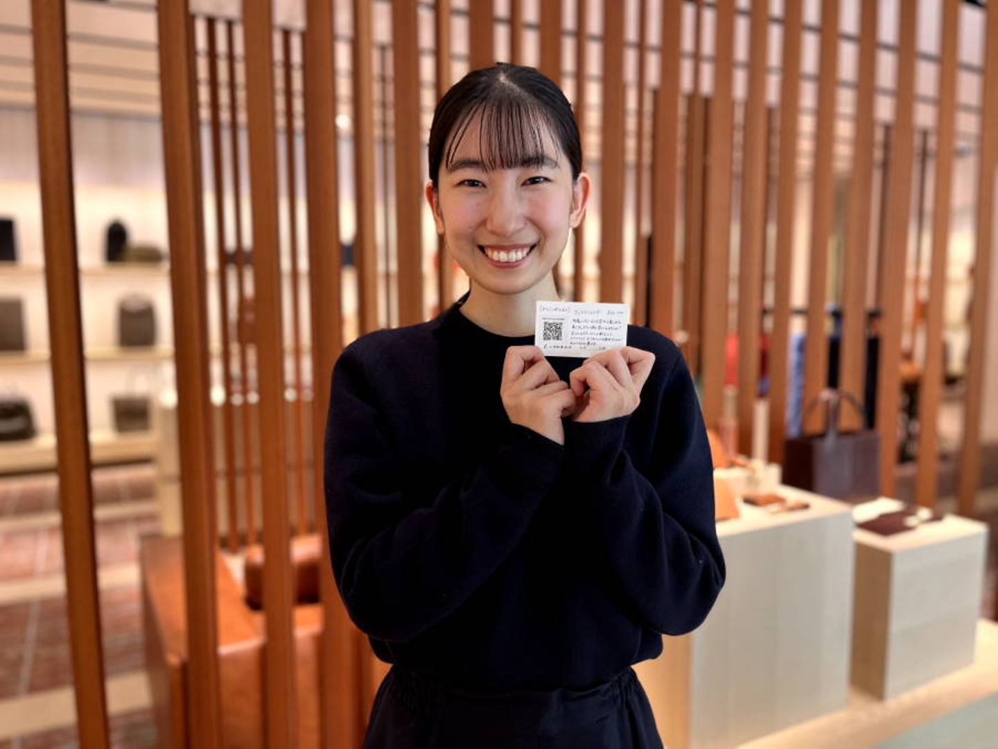 土井 加音(どい かおん)2023年土屋鞄製造所に新卒で入社。コミュニケーション本部 店舗統括部 東日本第一エリアへ配属。西新井本店にて大人向け皮革製品の販売・接客を行う。