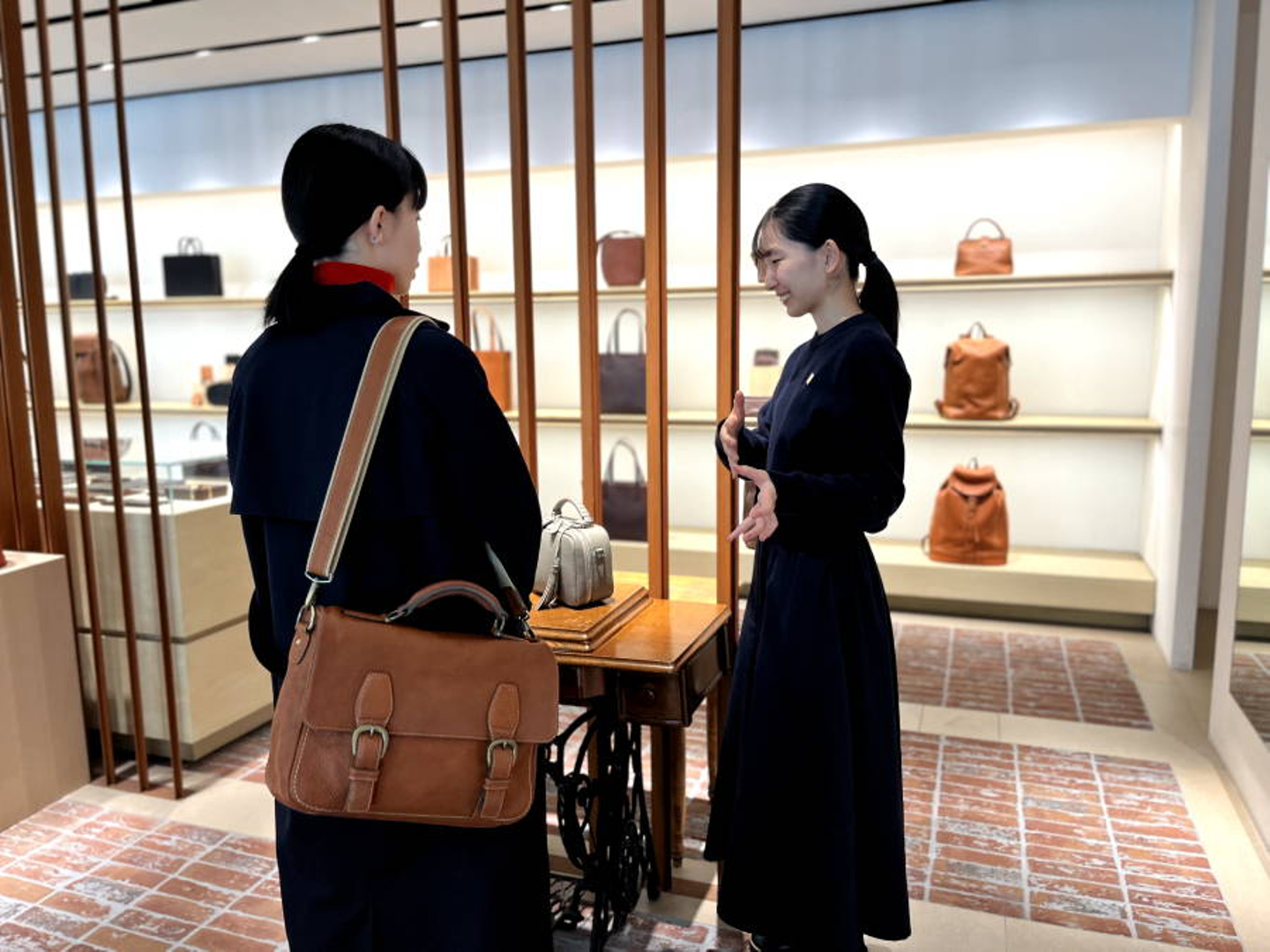 実際、店舗に配属され、そのイメージはすぐ刷新されました。先輩スタッフから「『鞄を売る』というよりも、友達や家族など身近な人に『一緒に鞄を選んであげる』と思うといいよ」という言葉をいただいたことは衝撃的でしたし、そういうマインドの方たちと共に働けるのがとても嬉しいです。