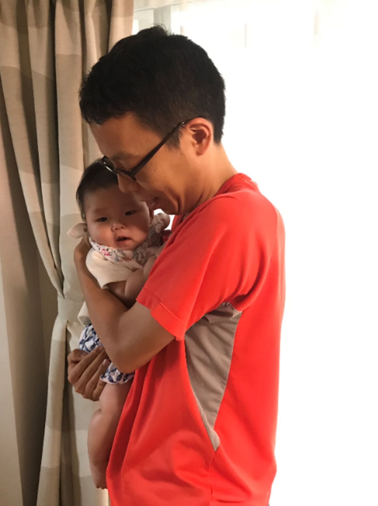 ↑ お昼寝から起きて、泣き出したので、抱っこであやしているところ