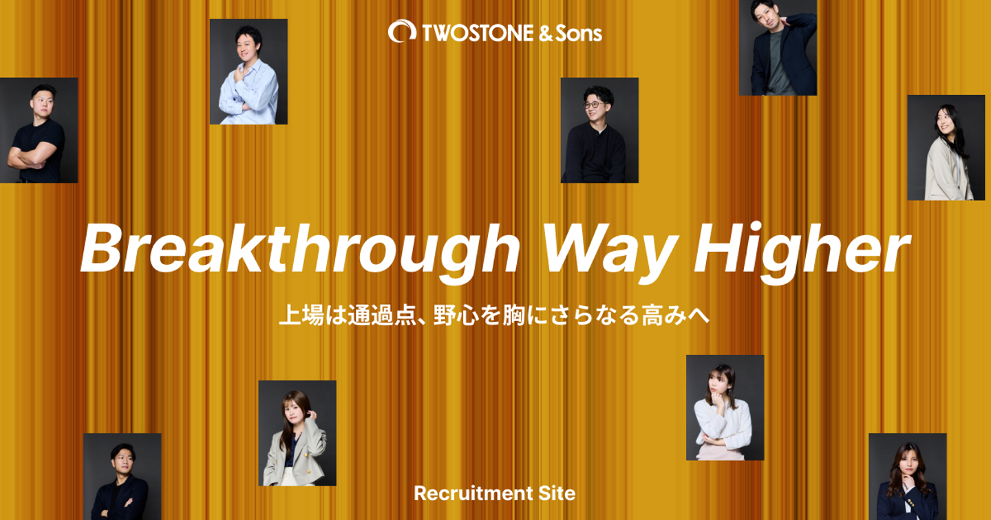 今回のサイトにおけるキーメッセージ・コンセプトである「Breakthrough Way Higher」には、現状に満足せずもっともっと上を目指していこうというTWOSTONE&Sonsの想いが込められています。