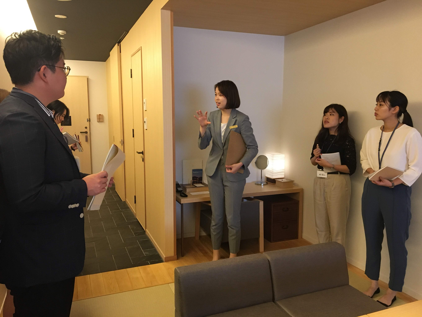 また、内定者同士でも「このランプカバーの素材は何ですか?」「アメニティボックスの中身は誰が用意しているんですか?」など、設計志望と運営志望で見る視点が違い、お互いに新鮮に感じる場面も。