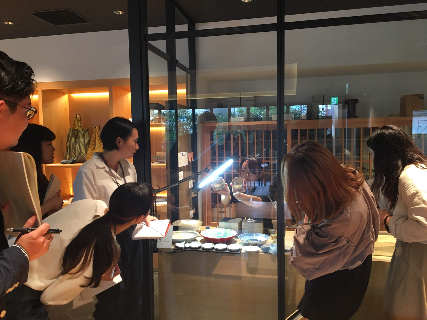 ホテル カンラ 京都の特徴の1つ。職人さんが常駐する、ショップ内の金継ぎ工房にも興味津々。