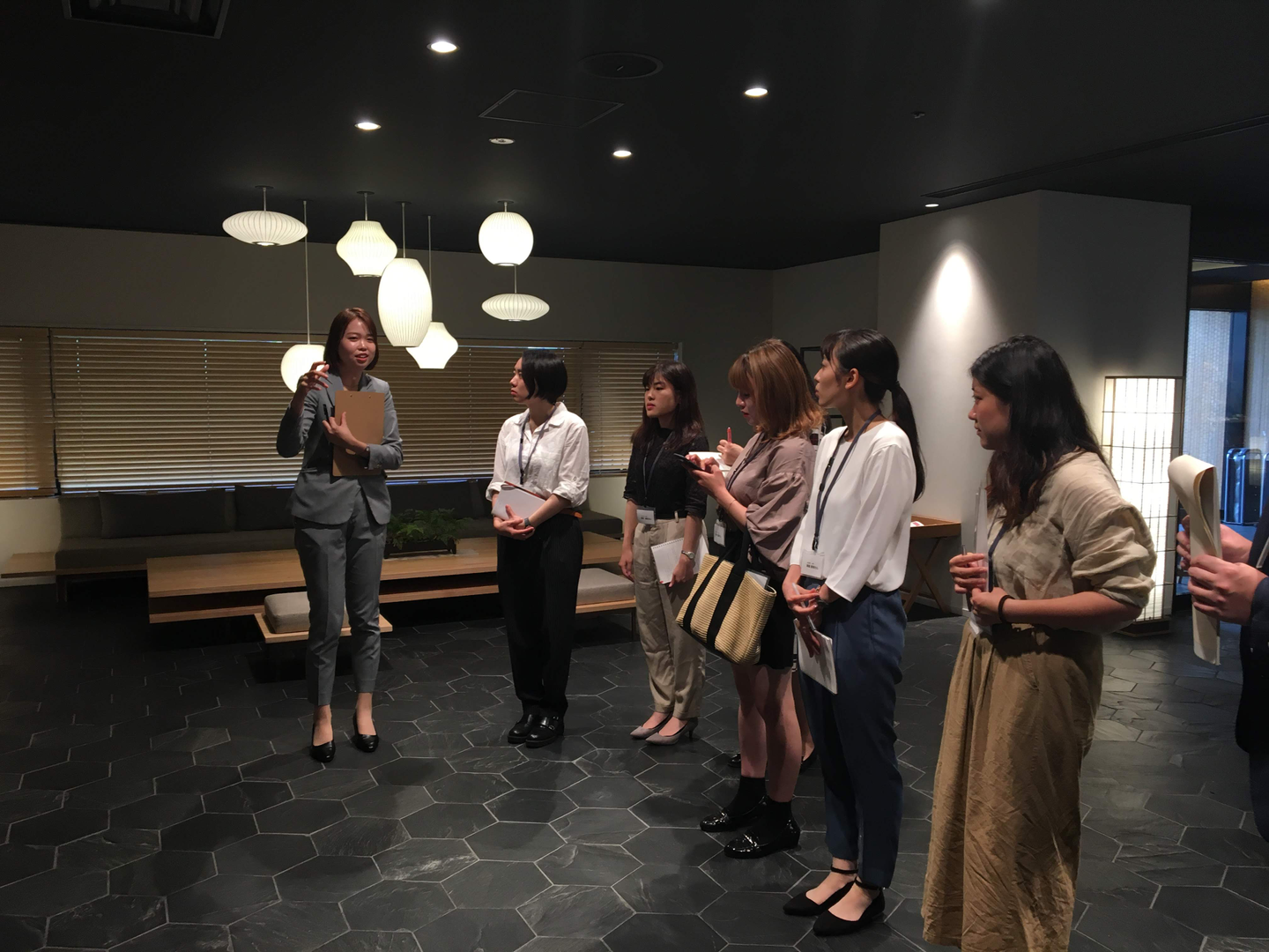 2020年春にUDS入社を予定している内定者がホテル カンラ 京都を訪れるツアーと懇親会を開催しました。当日参加した来春入社予定の内定者は、企画や設計、運営など様々な職種が入り混じった7名のみなさん。