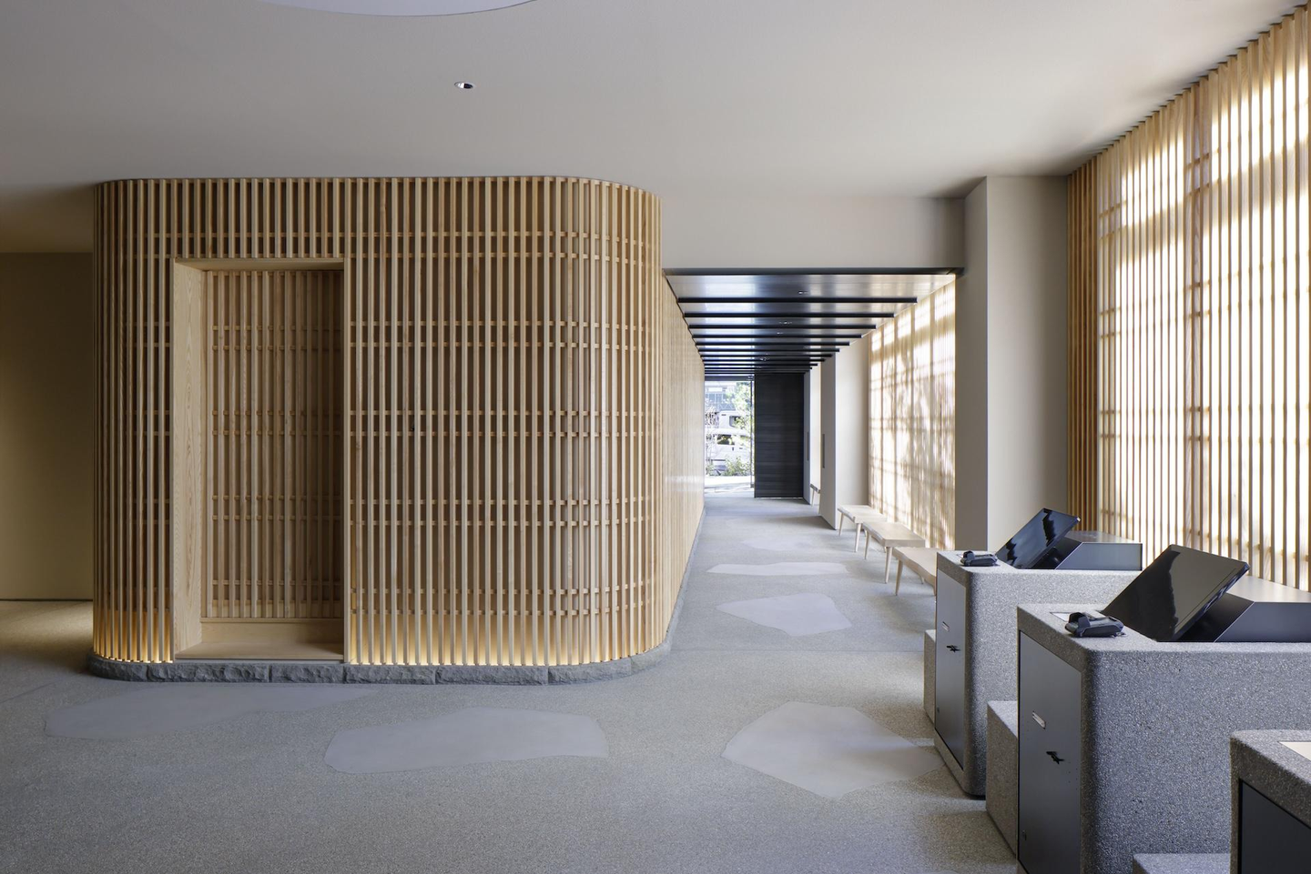 チームのみんなでコンセプトやブランディングを決めるところから始まり、ブランドの考え方を建築・デザインに落とし込んでいきます。特徴的なデザインでいうと、骨材を見せるような洗い出し仕上げを多く使いました。金沢のまちは海が近いこともあり、海の砂を使って歩道などを洗い出し仕上げにする伝統的な技術背景があります。そうした文脈を踏まえて設計に取り入れました。